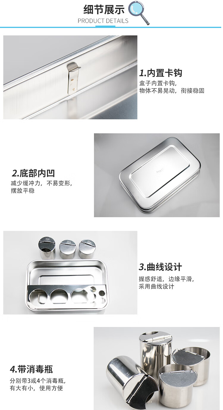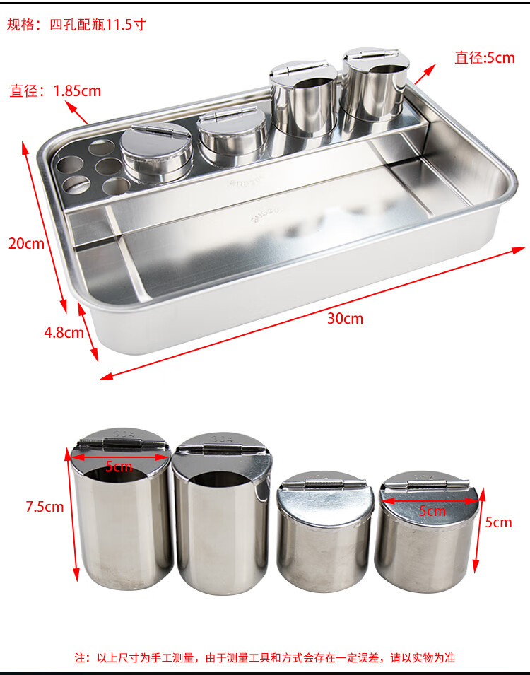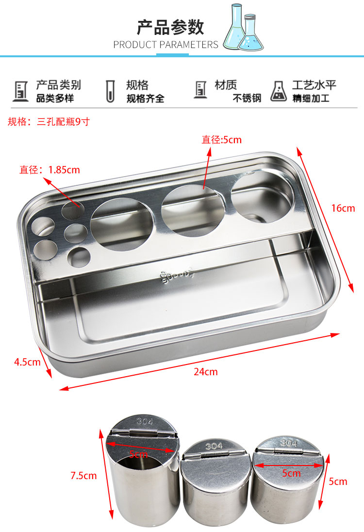 海斯迪克 不锈钢换药盘 HKCL-708 四孔配瓶 1个