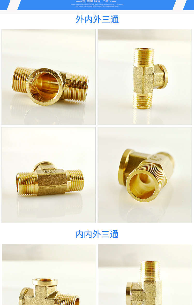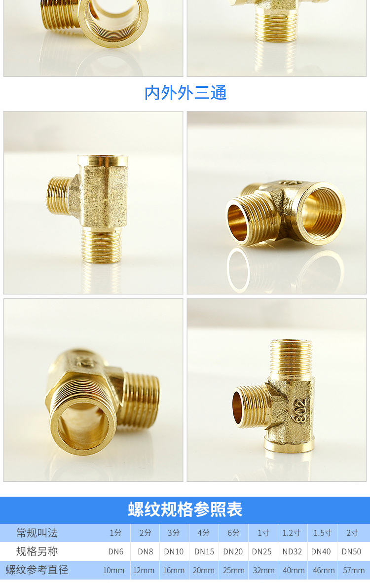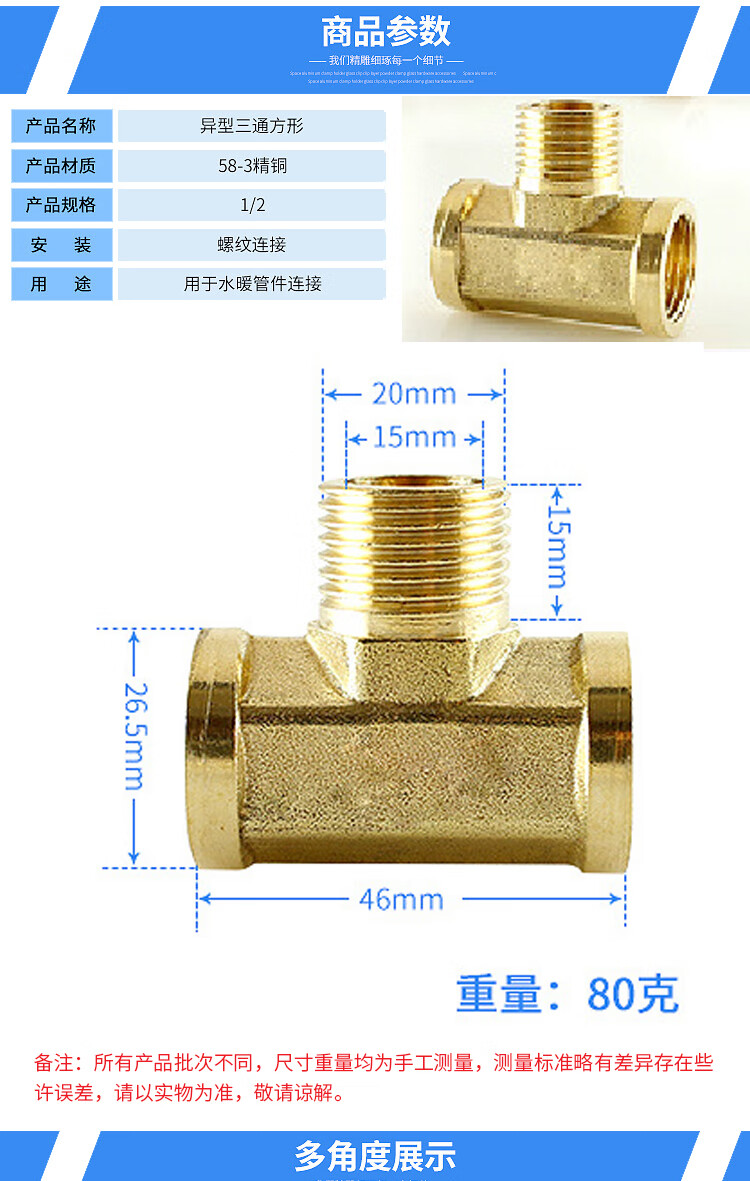 海斯迪克 4分DN15铜三通接头 HK-694 内外内方体 5个 1包