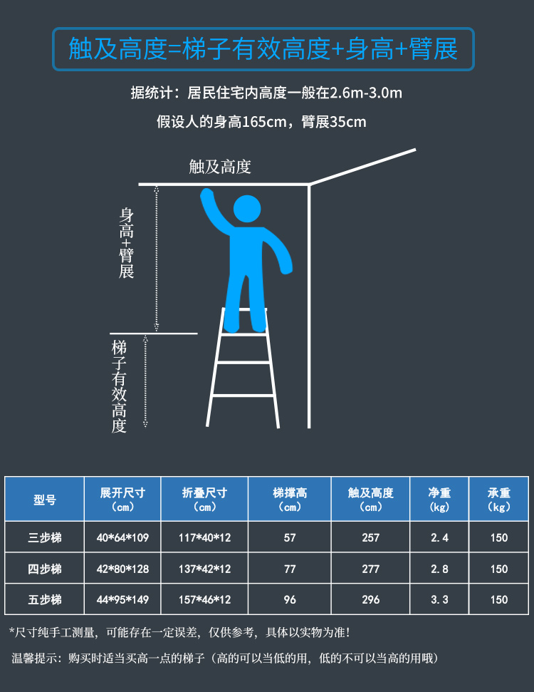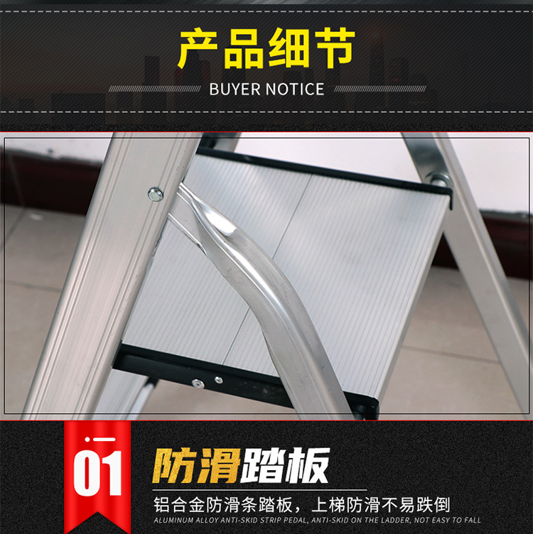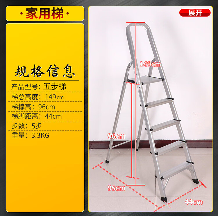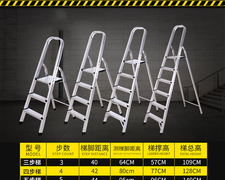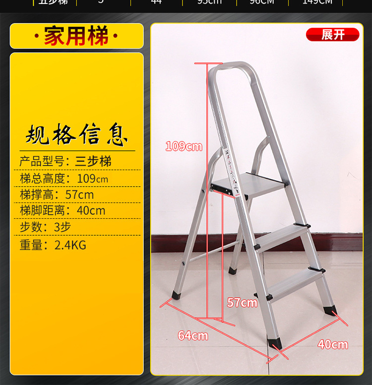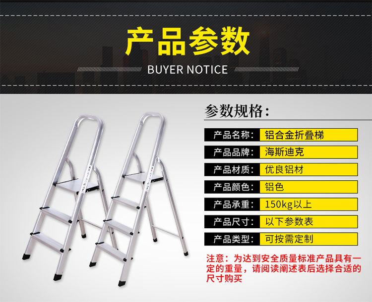 海斯迪克 加厚铝合金折叠梯子 HK-5063 三步梯 1个
