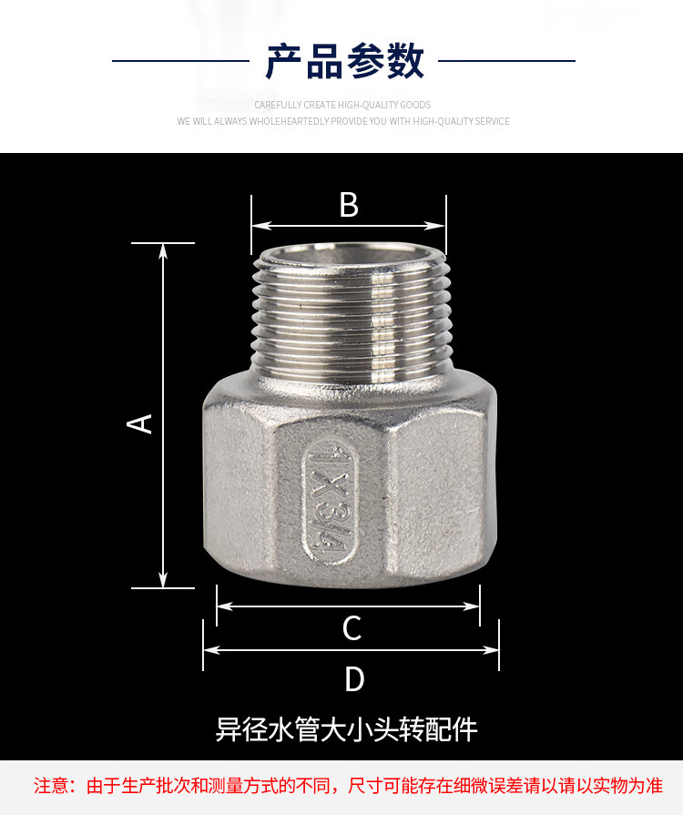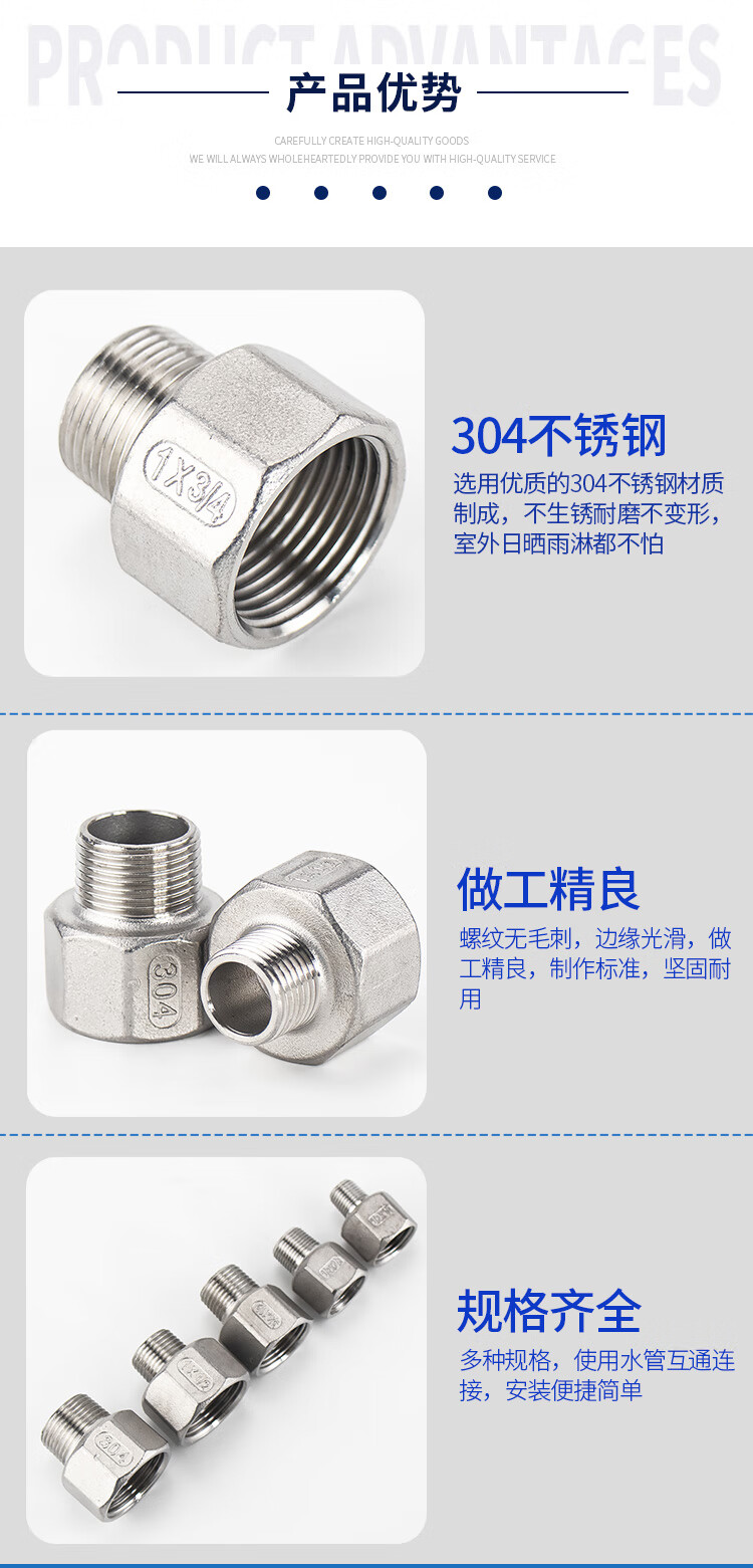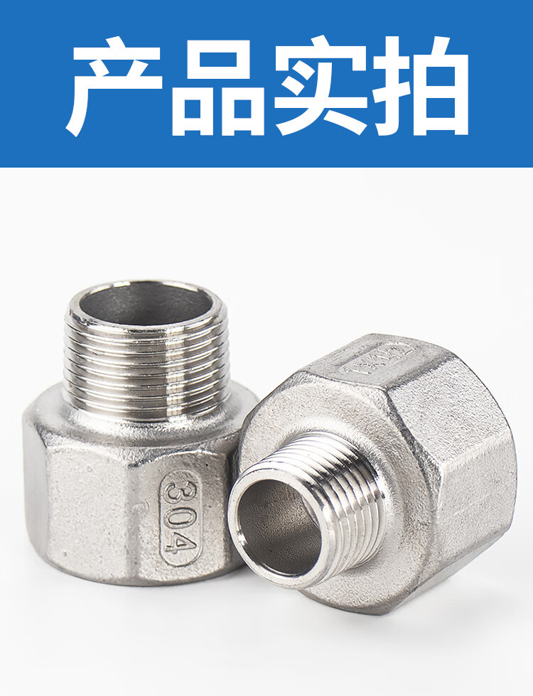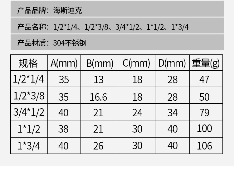 海斯迪克 304不锈钢六角内外丝变径直接头 HKCL-863 1/2*3/8 1个
