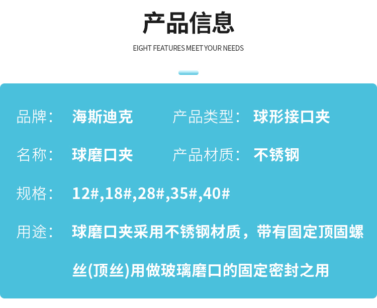 海斯迪克 不锈钢球磨口夹 HKCX-36 28# 1个
