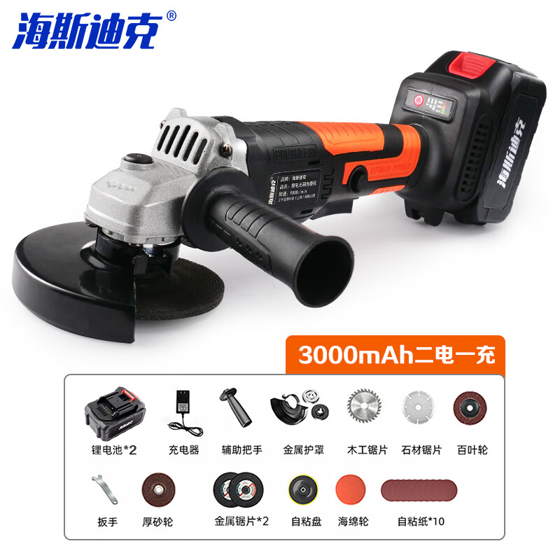 海斯迪克 无刷角磨机[下架] 锂电角磨机 3000mAh 二电一充 1把