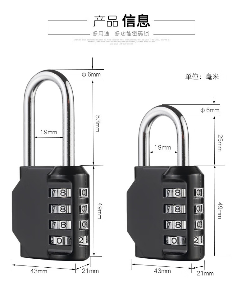 海斯迪克 4位房门柜子加长挂锁 HKsq-301 长梁 1把