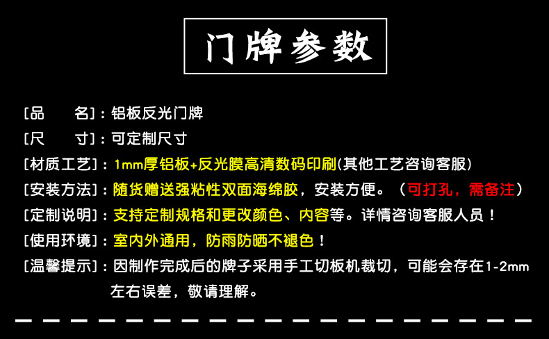 海斯迪克 铝板反光门牌 HK-574 铝板覆反光膜 6×12cm 号码牌 1个