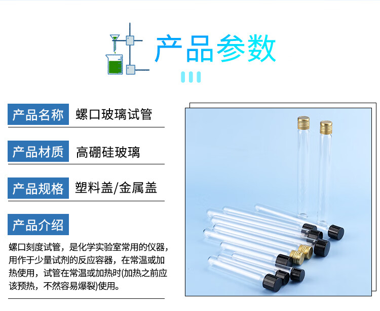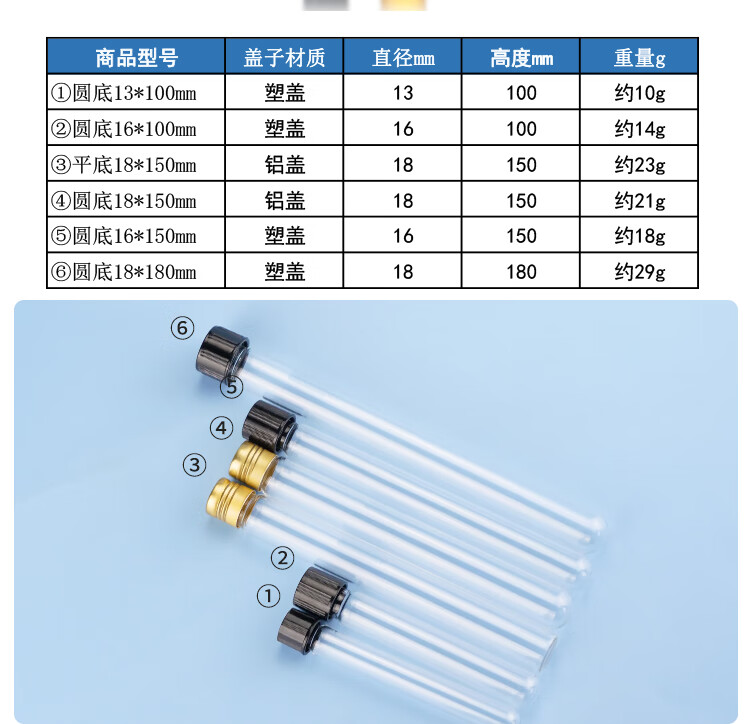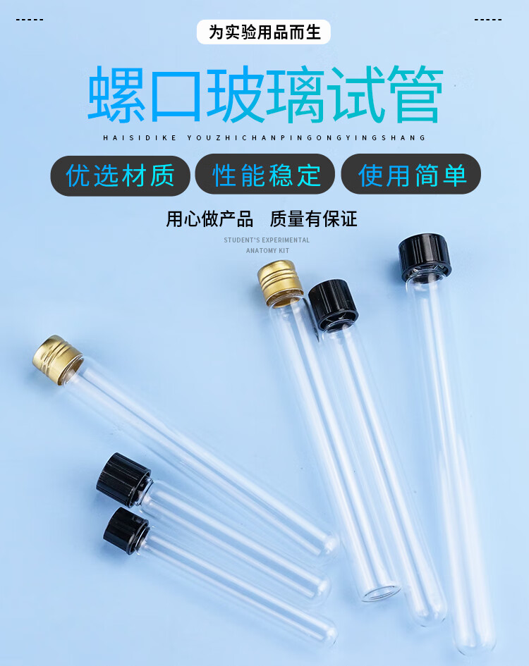 海斯迪克 带盖试管 HKCL-841 高硼硅玻璃 铝盖平底 18*150mm 10支 1袋