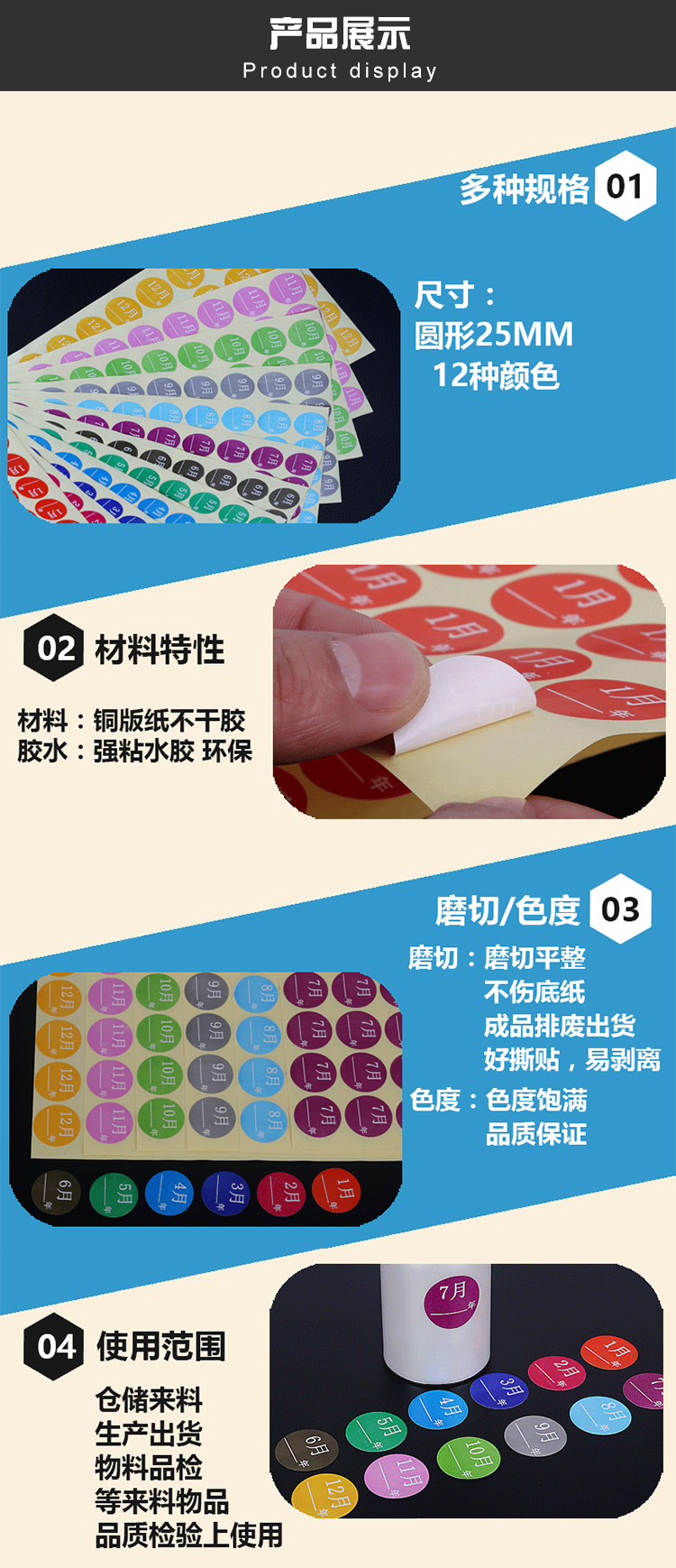 海斯迪克 月份标签贴纸 HKLY-100 不干胶 2月 1000贴 1包
