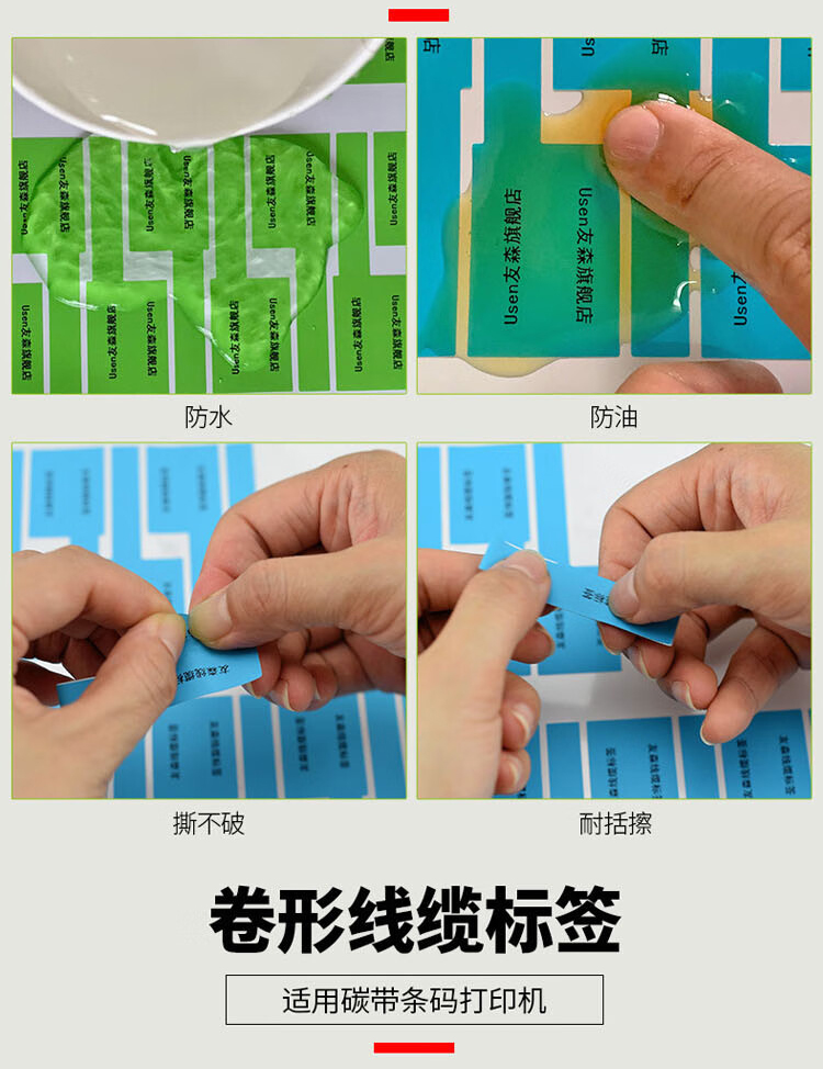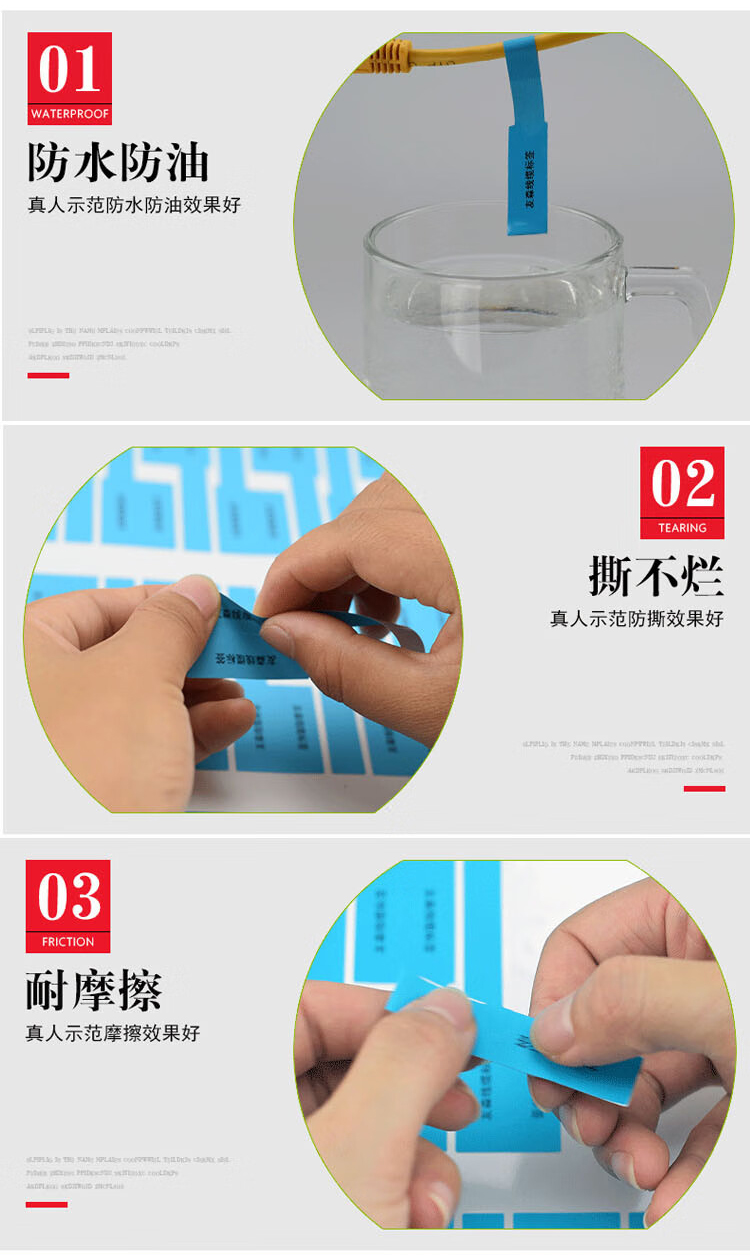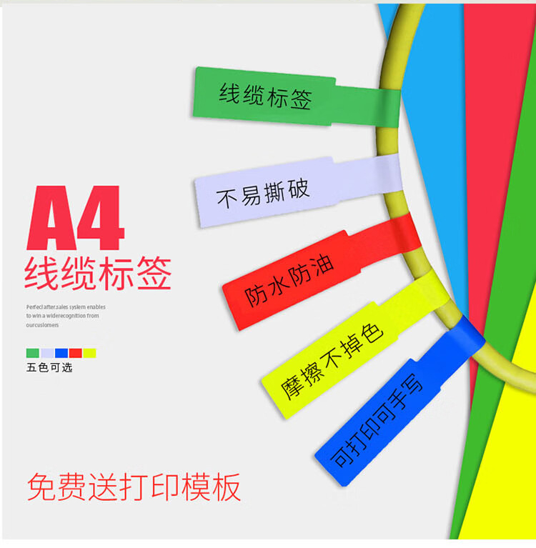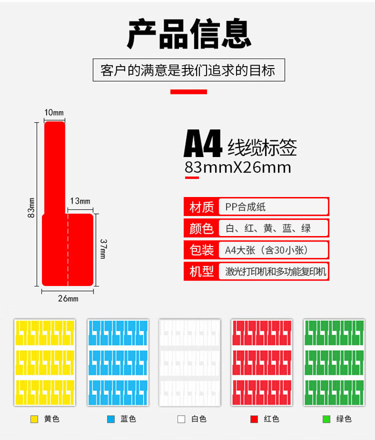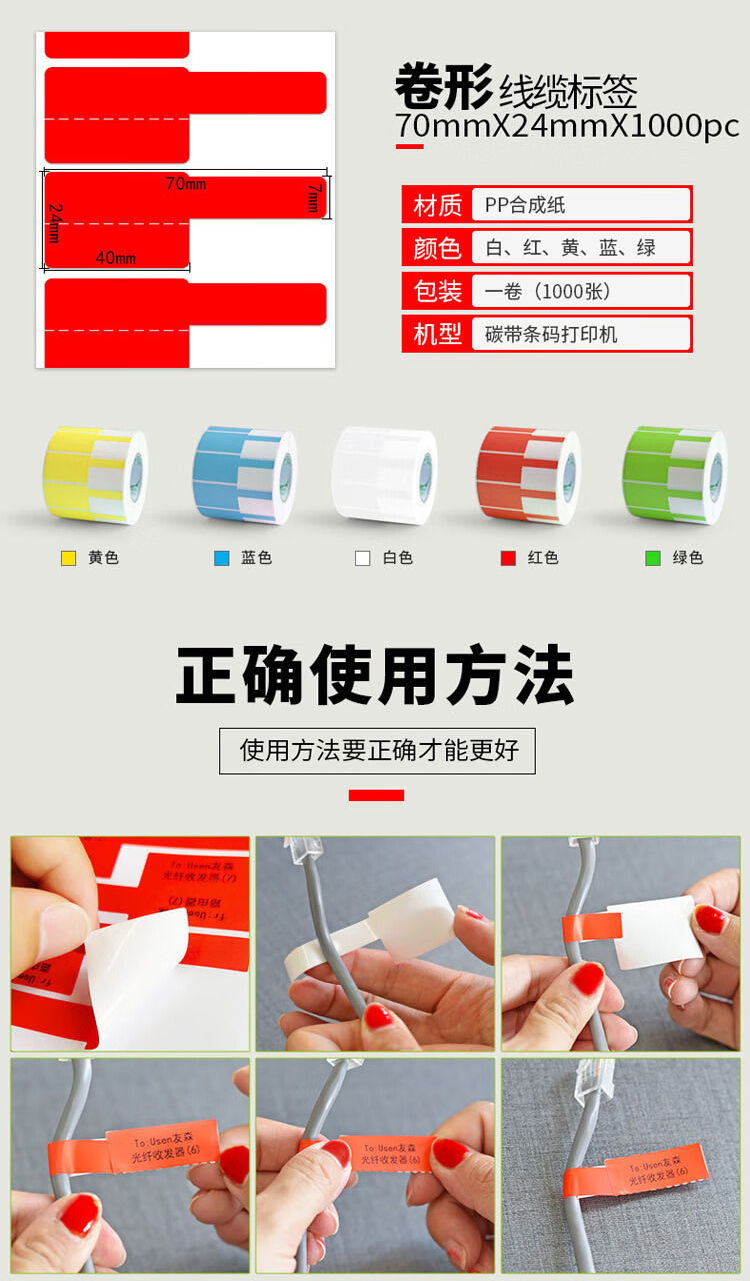 海斯迪克 线缆标签贴纸 HKL-407 不干胶 红色 50张 1包