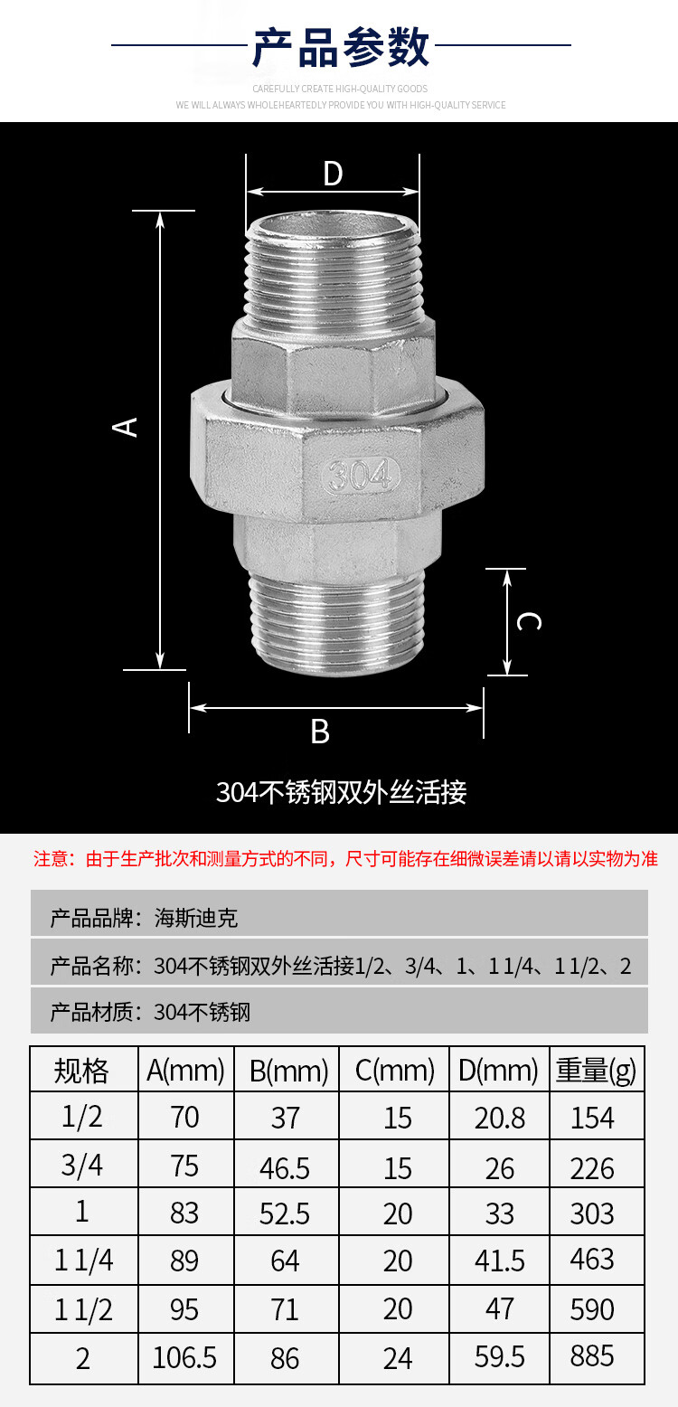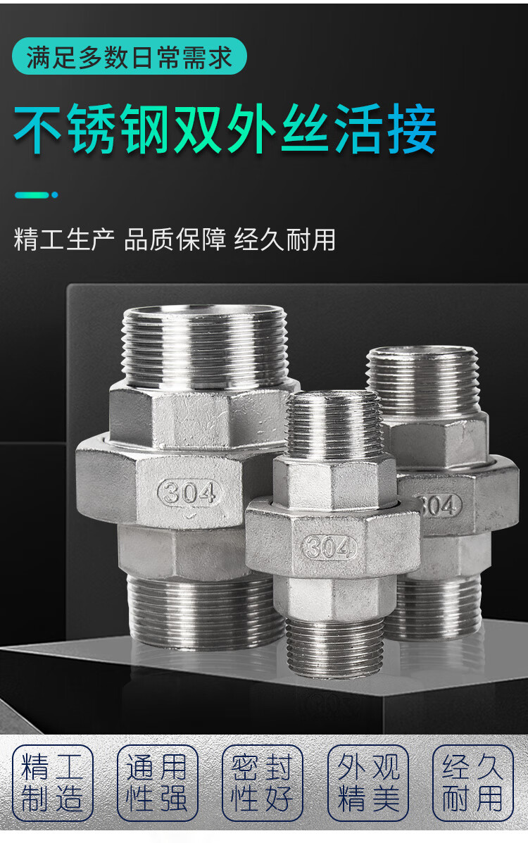 海斯迪克 双外丝活接 HKCL-767 304不锈钢 2 DN50 2寸 1个