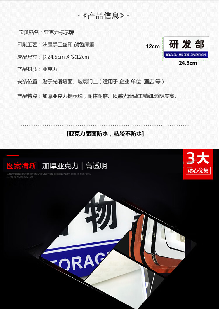 海斯迪克 办公室门牌 HKW-362 亚克力 24.5x12cm 布草间 1个