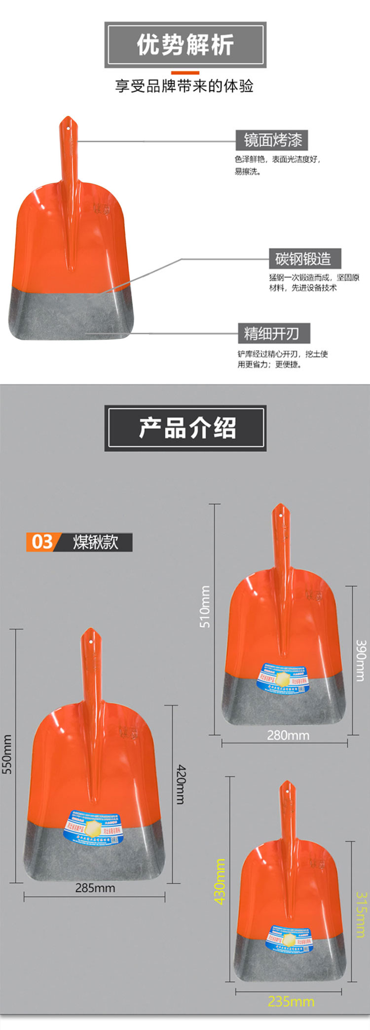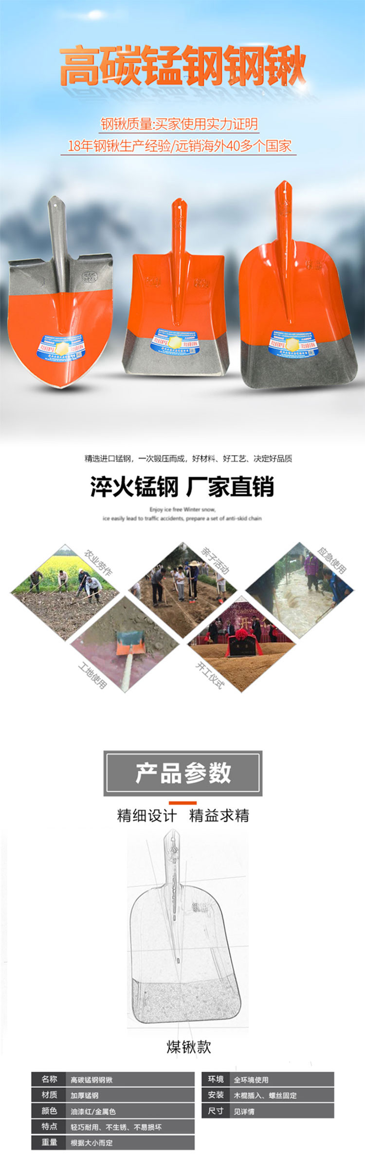 冰禹 铁锹 BY-001 锰钢 中号 煤锹方形 含柄+3双手套 1件