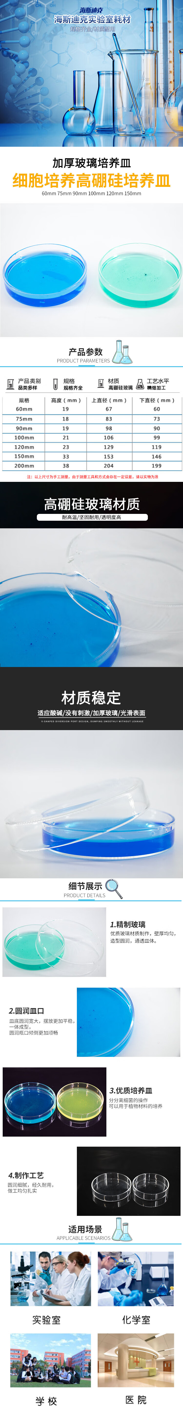 海斯迪克 加厚玻璃培养皿 HKQS-150 150mm 高硼硅玻璃 33mm 1个