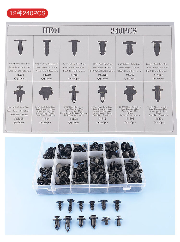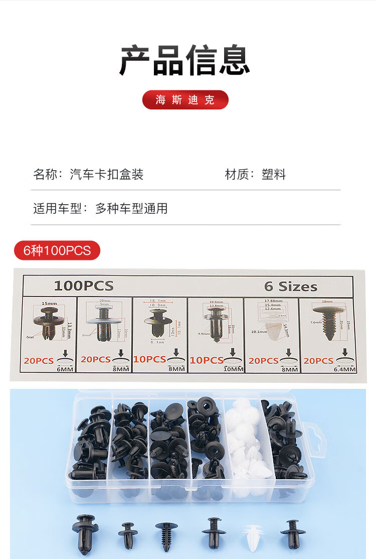 海斯迪克 汽车卡扣盒装 HKsq-247 6种 100pcs 塑料 6种 1盒