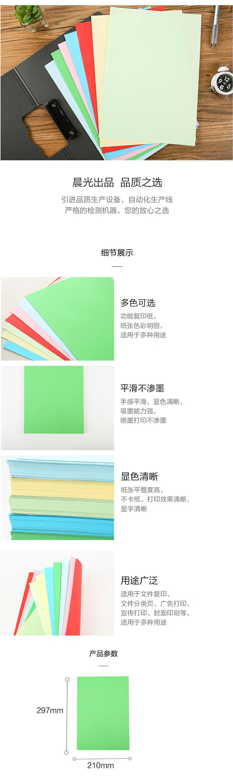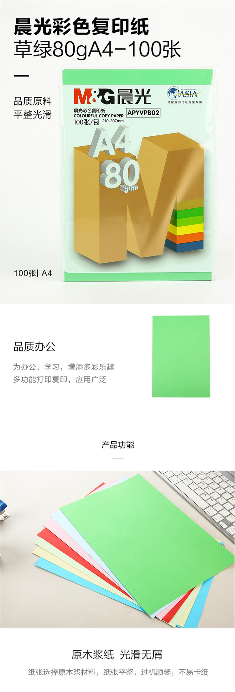 晨光 彩色复印纸 APYVPB0276 80g 草绿色 2包 1件