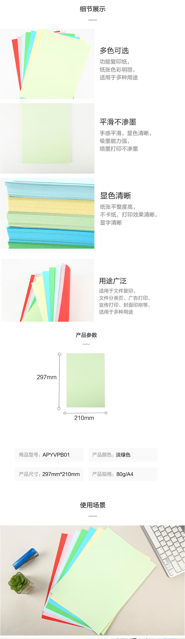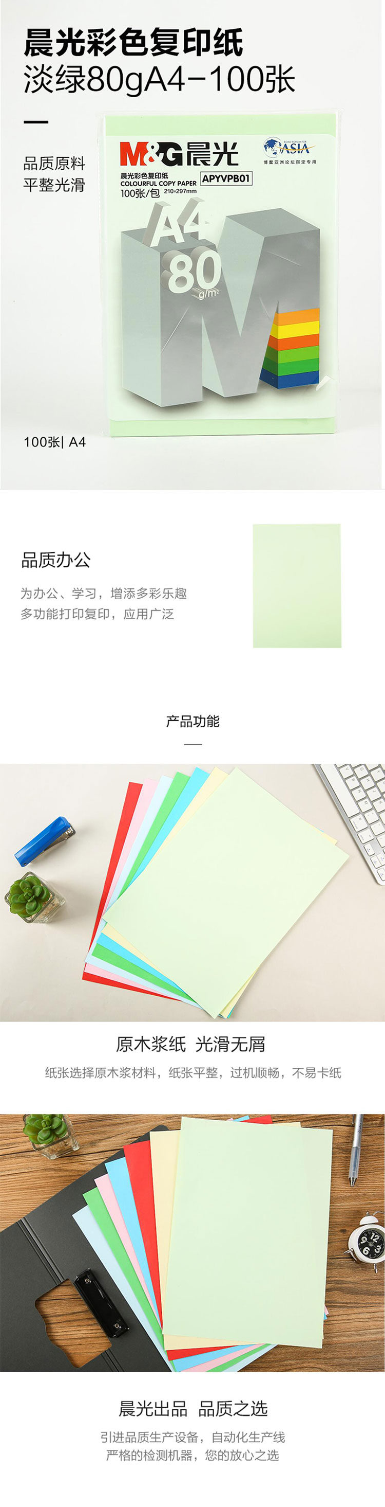 晨光 彩色复印纸 APYVPB0174 淡绿色 A4-80g 100张 1包