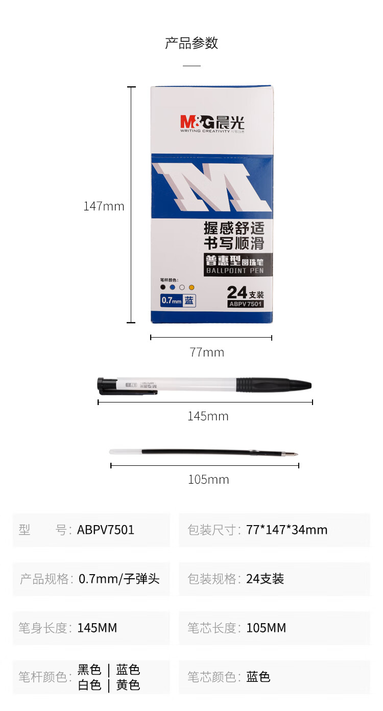 晨光 子弹头圆珠笔 ABPV7501 蓝色 0.7mm 24支 1盒