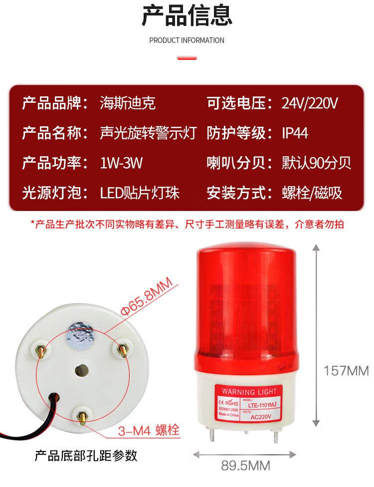 海斯迪克 LED警示灯 HKCX-125 24V 开关款 157*89.5mm 1个