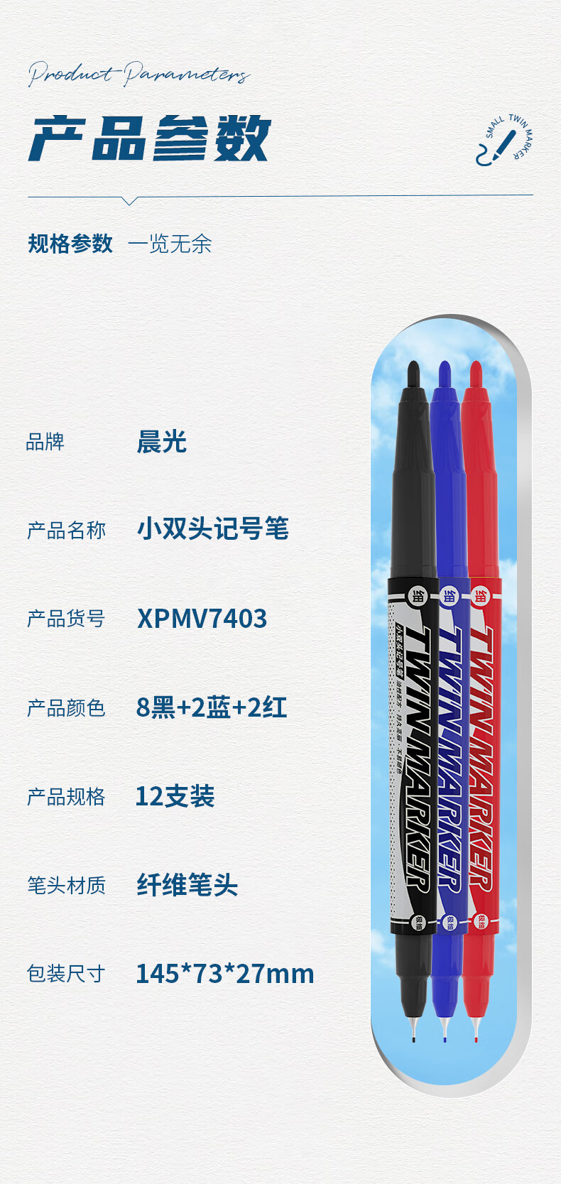 晨光 小双头记号笔 XPMV7404 多色 12支 1盒