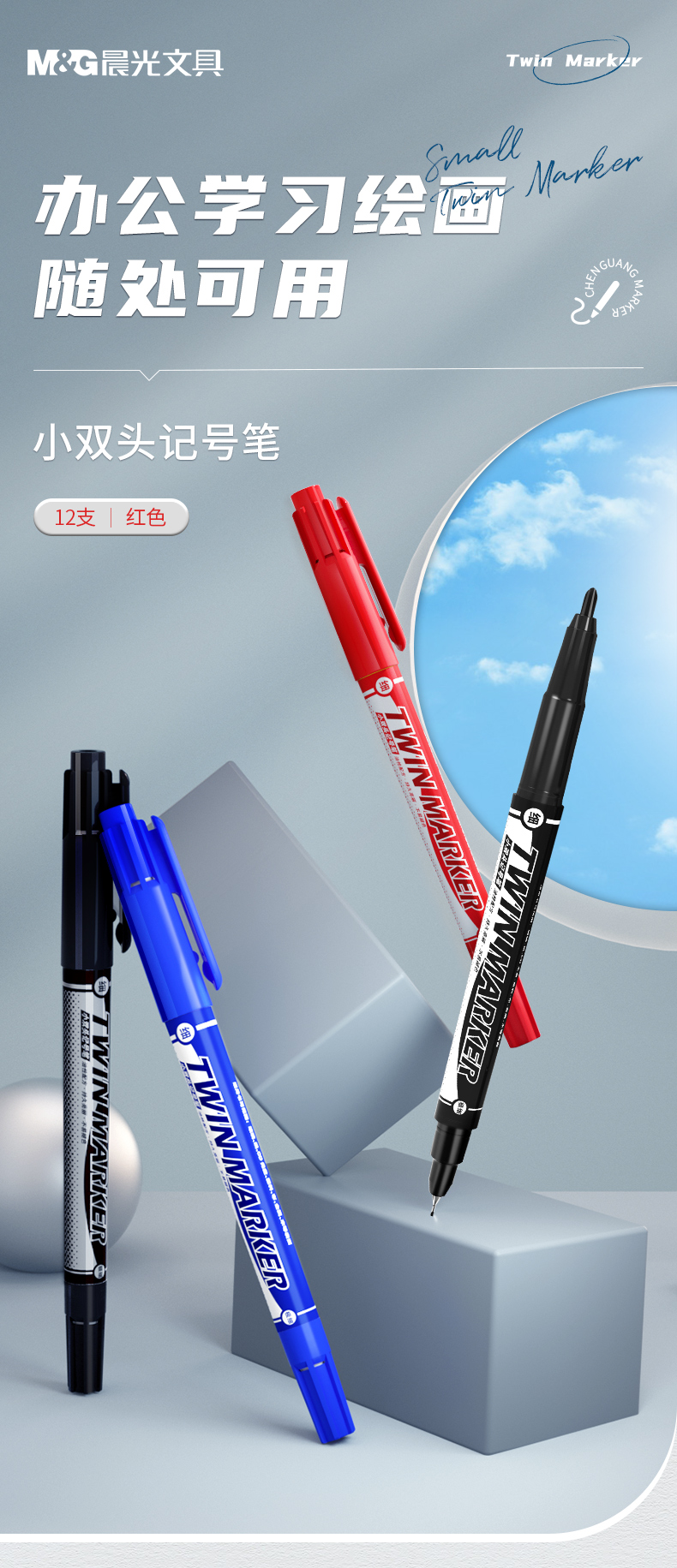 晨光 小双头记号笔 XPMV7403C 红色 12支 1盒