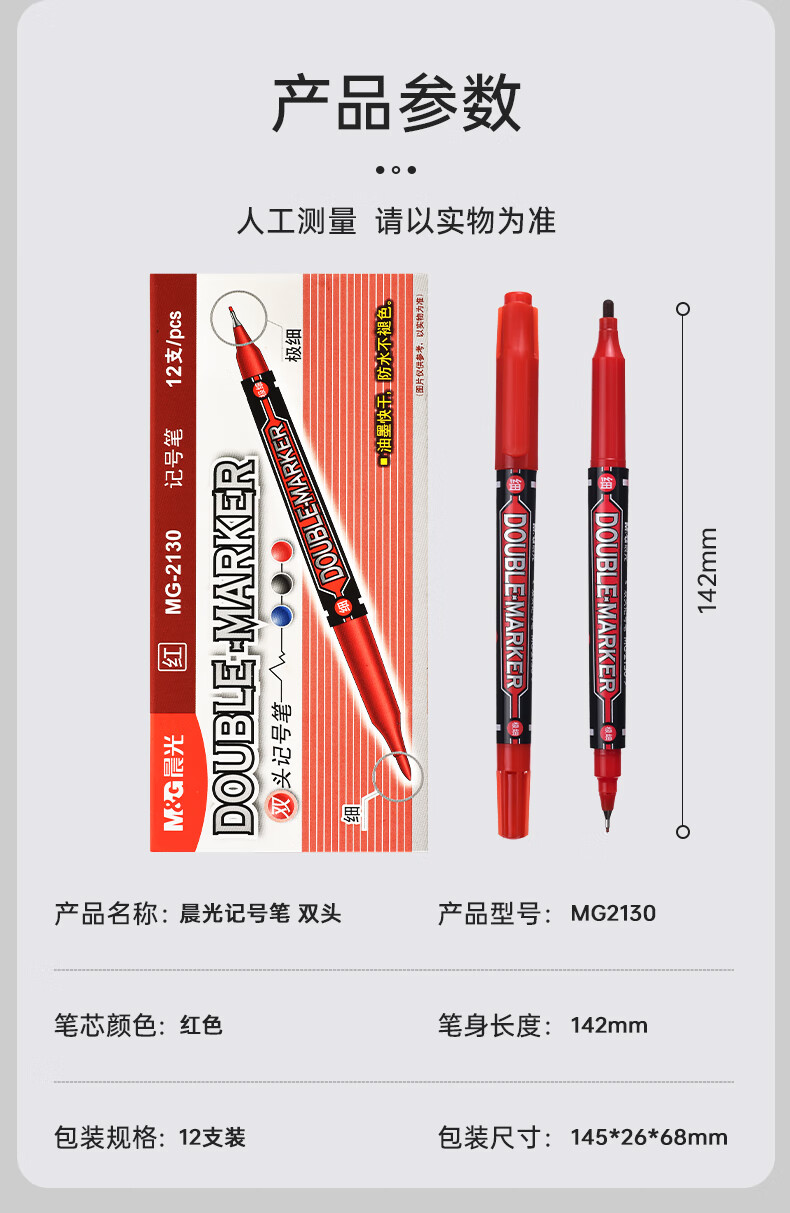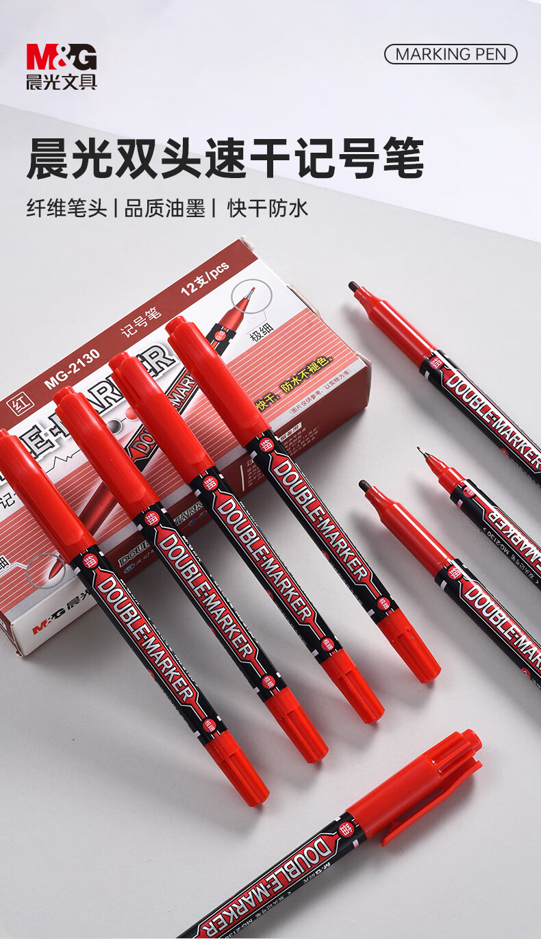 晨光 双头记号笔 MG2130 红色 12支 1盒