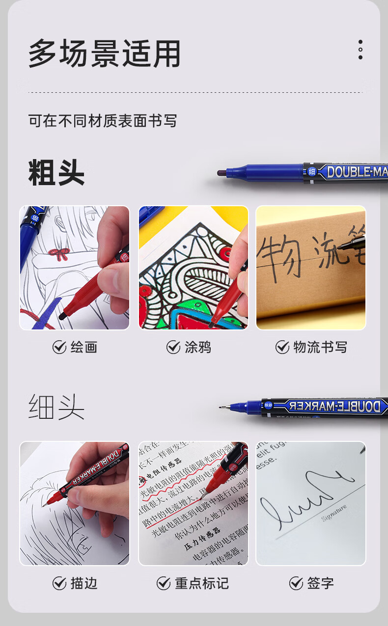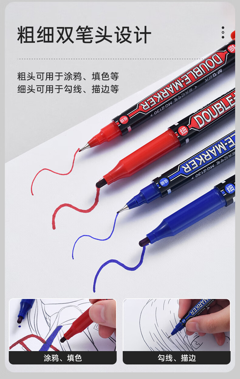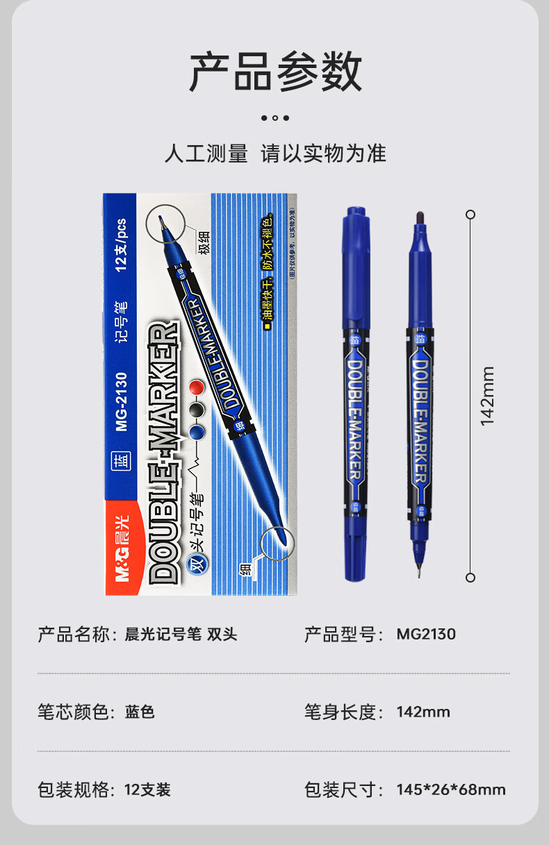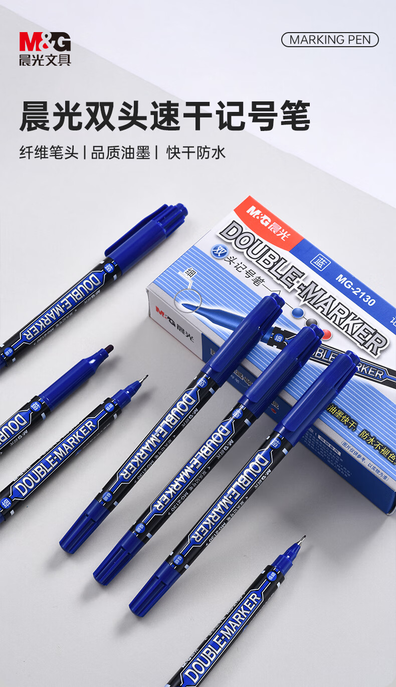 晨光 双头记号笔 MG2130 蓝色 12支 1盒