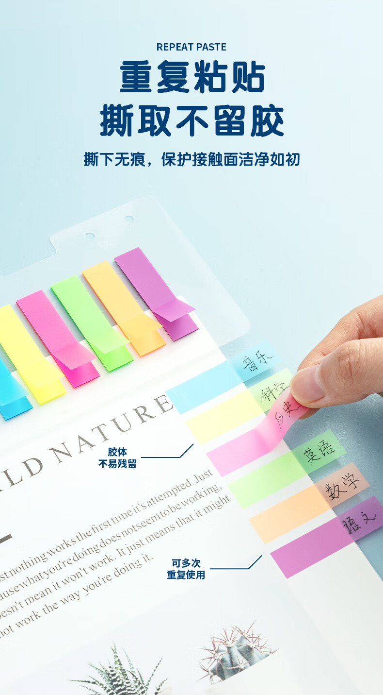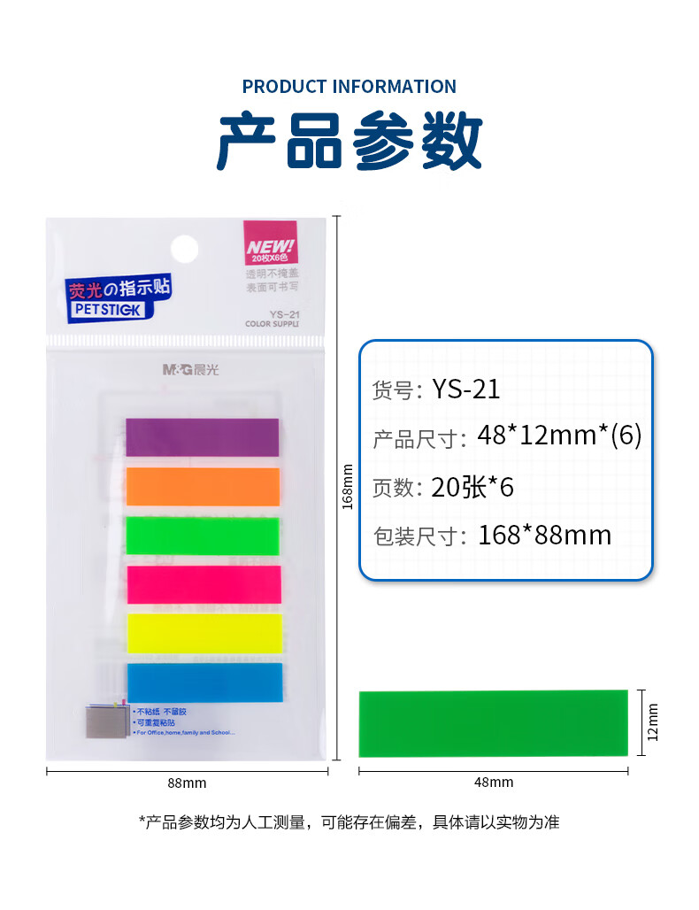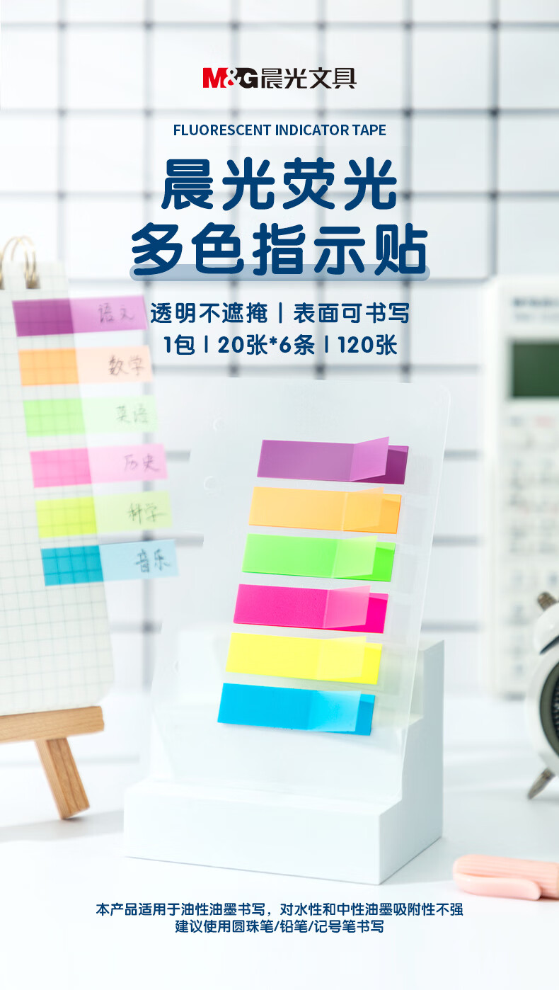 晨光 彩色索引贴 YS-21 6色 120枚 48*12mm 6条 1包