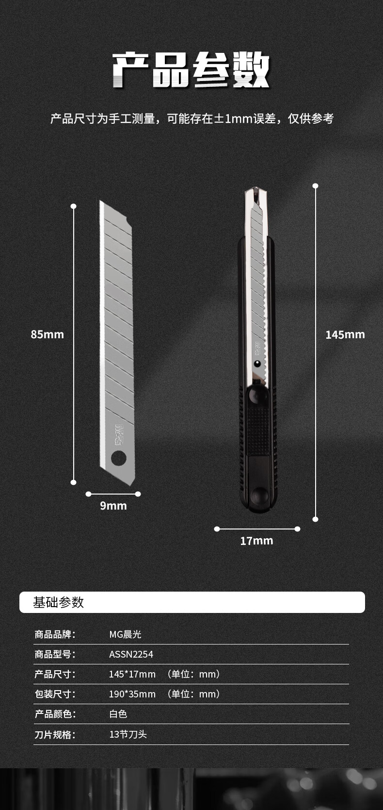 晨光 美工刀 ASSN2254 9mm 铝合金 黑色 1把