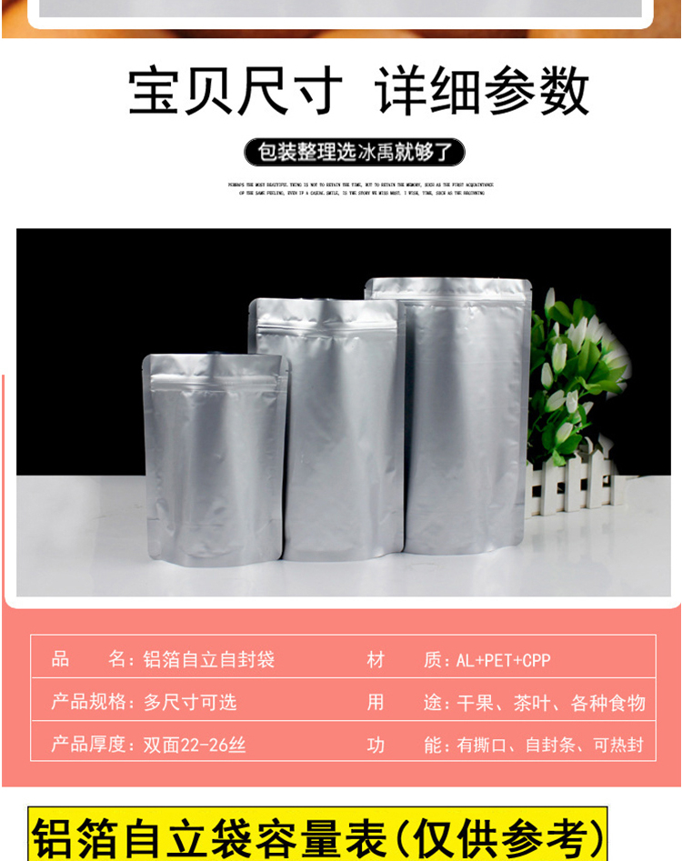 冰禹 铝箔自立式自封袋 BYjq-27 15*22+4(圆角) 50个 1包