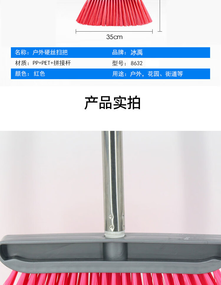 冰禹 扫把 BYyc-411 加大硬丝扫配三节拼接杆 红色 1把