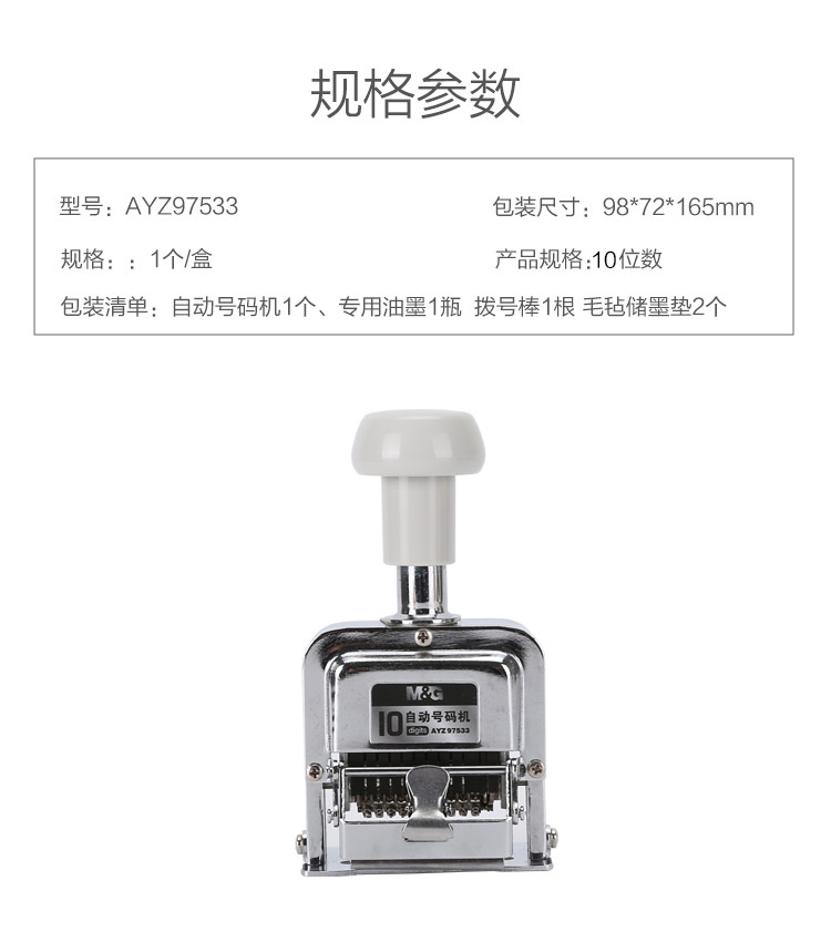 晨光 金属自动号码机 AYZ97533 10位 98*72*165mm 1个