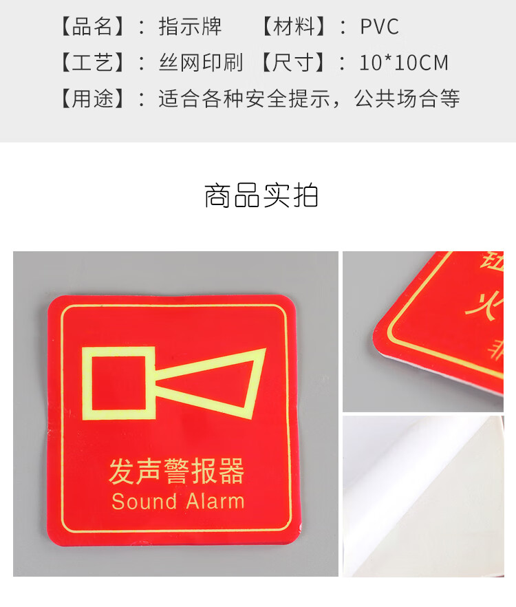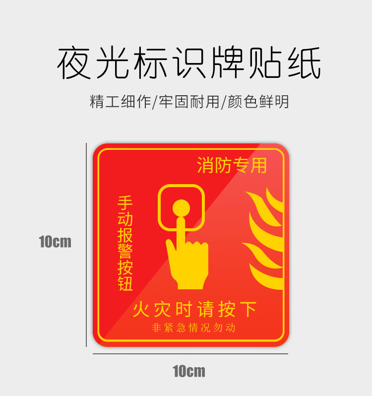 海斯迪克 PVC夜光标识牌贴纸 gnjz-255 10×10cm 手动报警按钮 火灾时请按下 1个