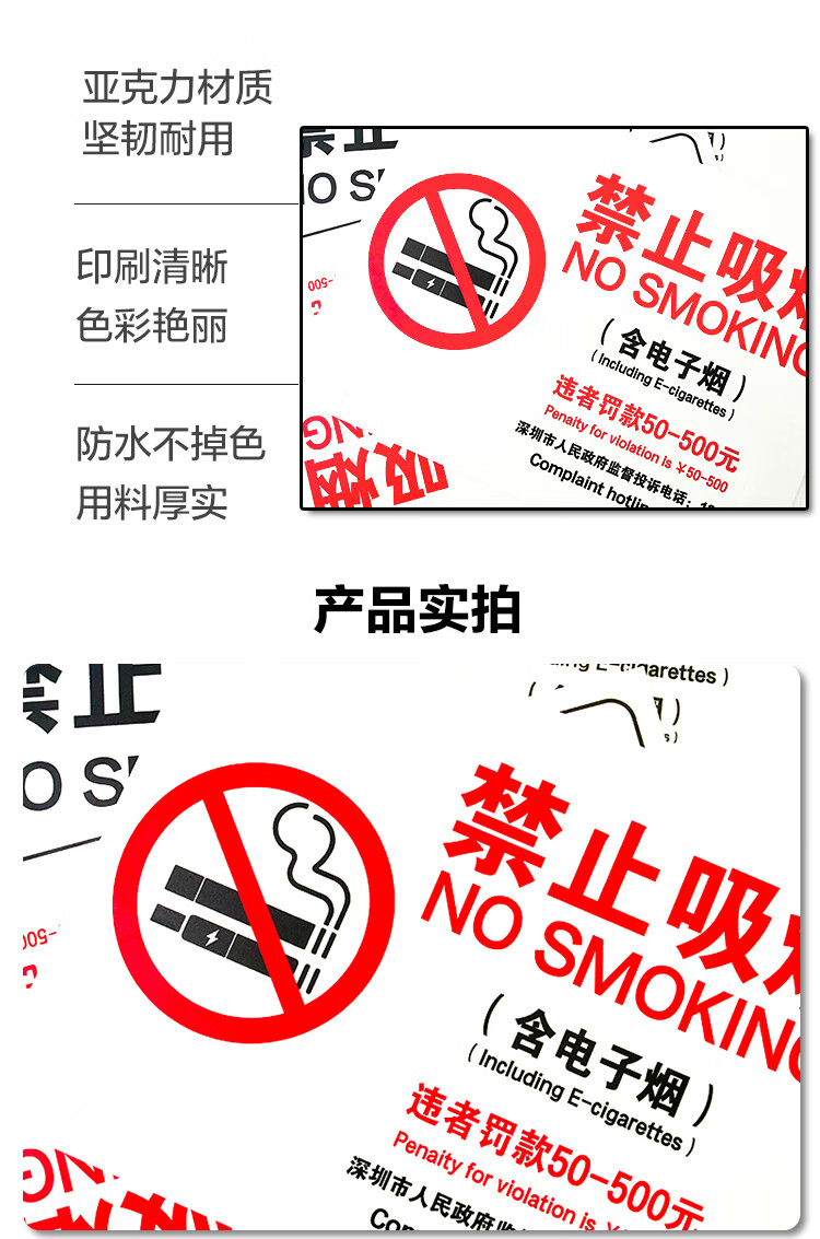 海斯迪克 新版禁止吸烟标牌横版 HKQL-106 深圳市禁烟标识 横版 30*40cm 亚克力 1个
