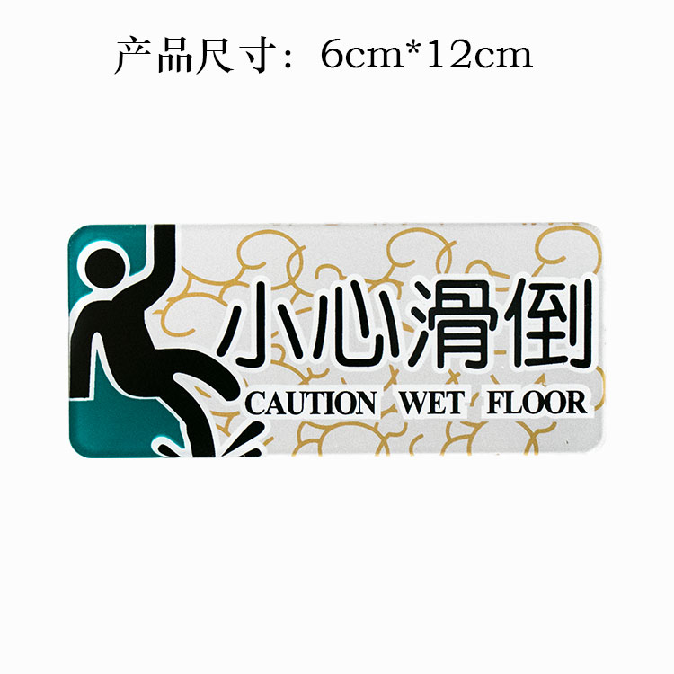 海斯迪克 安全标识牌 HYBS01-2 亚克力背面UV 小心滑倒 6*12cm 1个