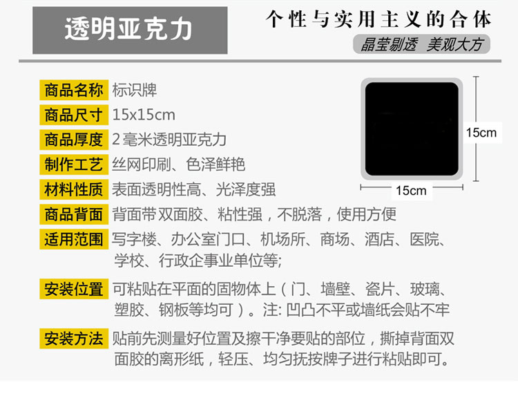 海斯迪克 标识牌提示牌警示牌 HKW-338 亚克力 15*15cm 洗手间 1个