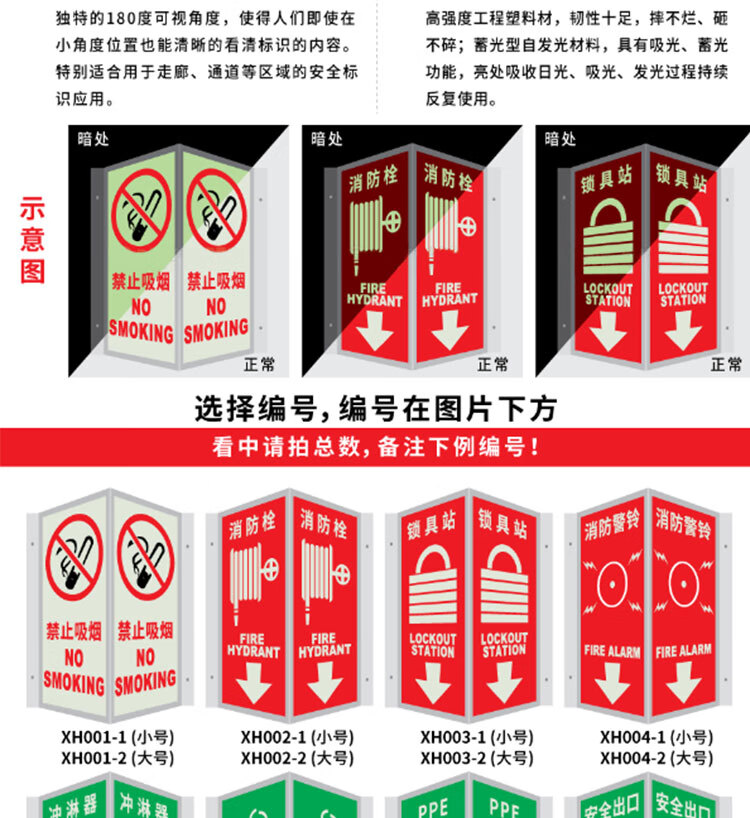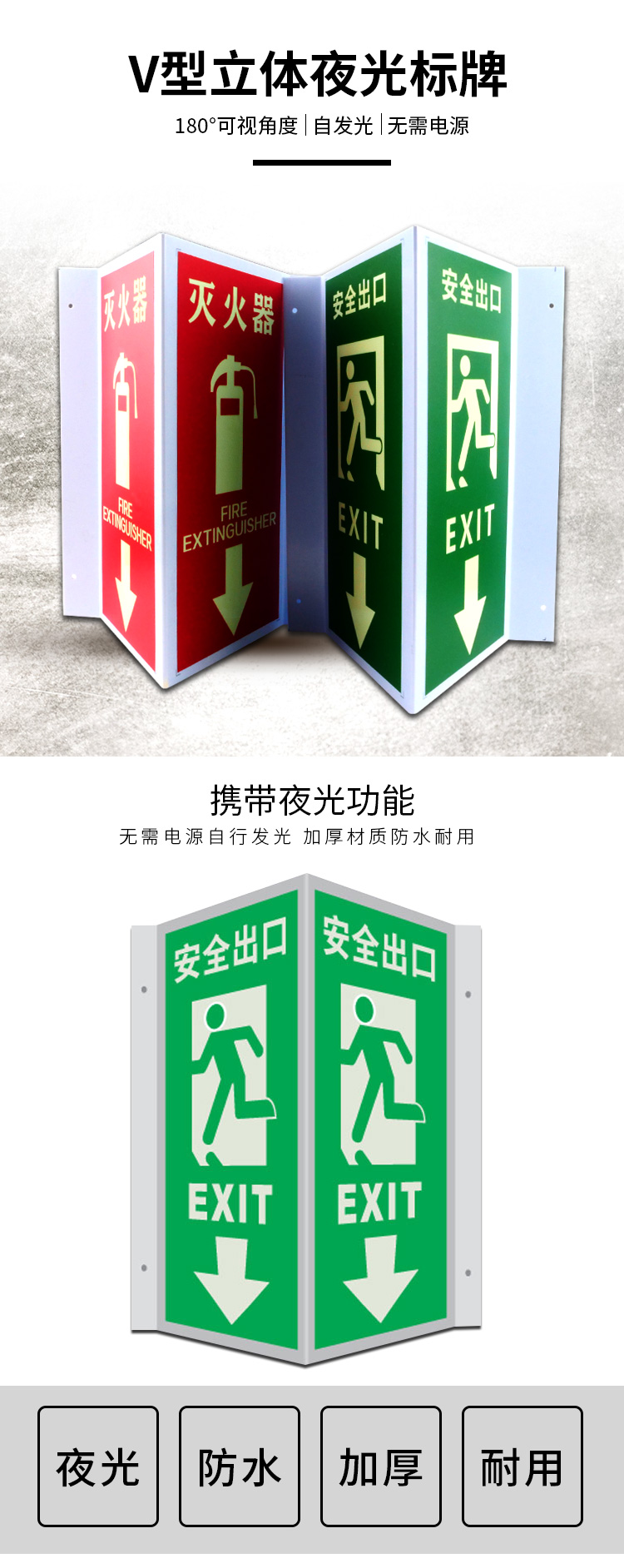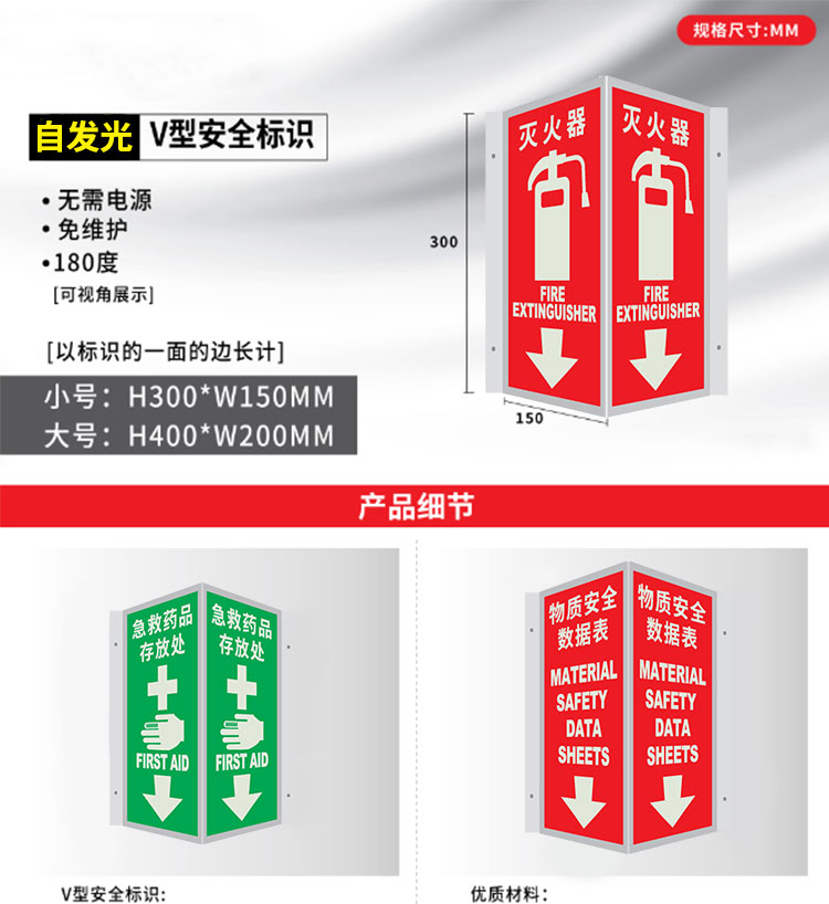 冰禹 V型夜光标识牌 BYaf-59 塑料板 15*30cm 泄漏应急箱 1个