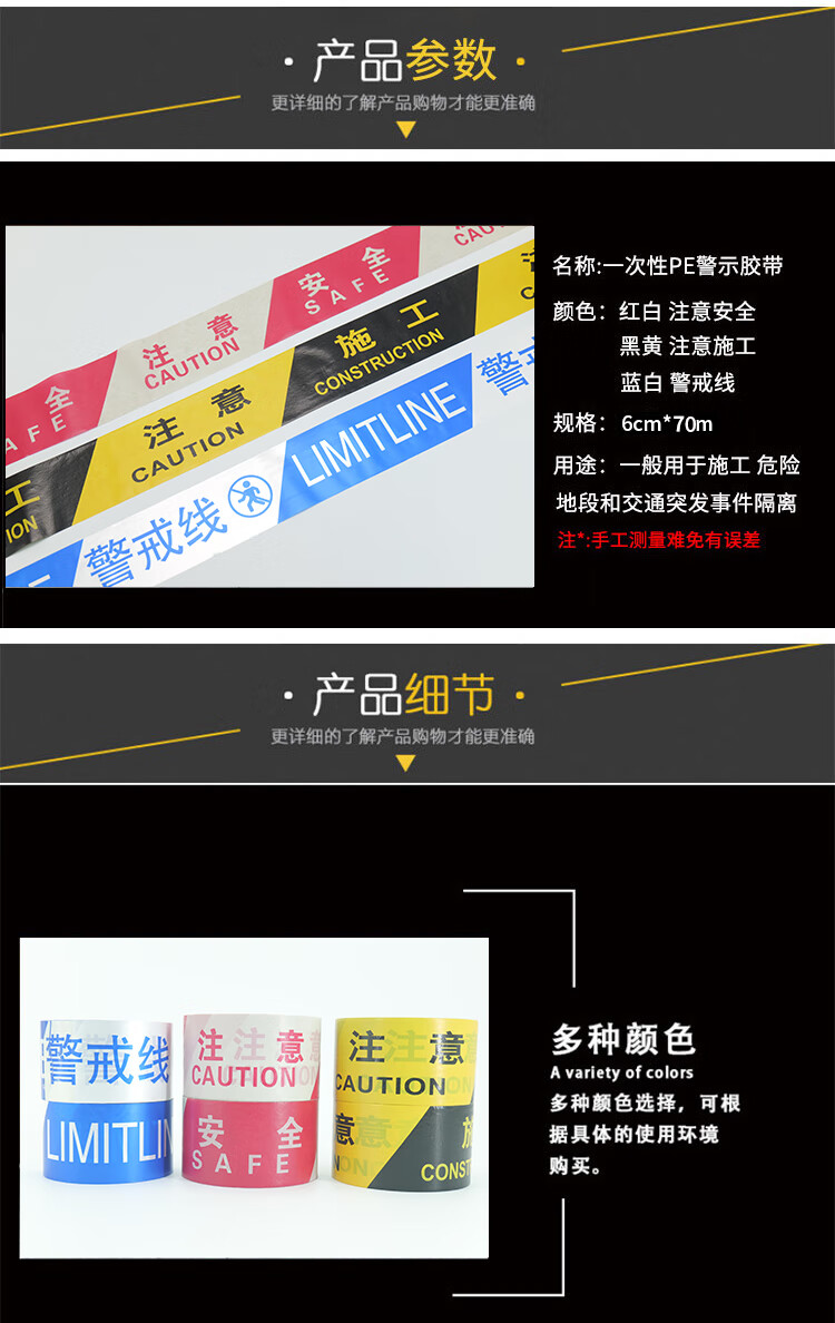 冰禹 一次性PE警示带 BYB-184 PE 70米 蓝白 5卷 1件