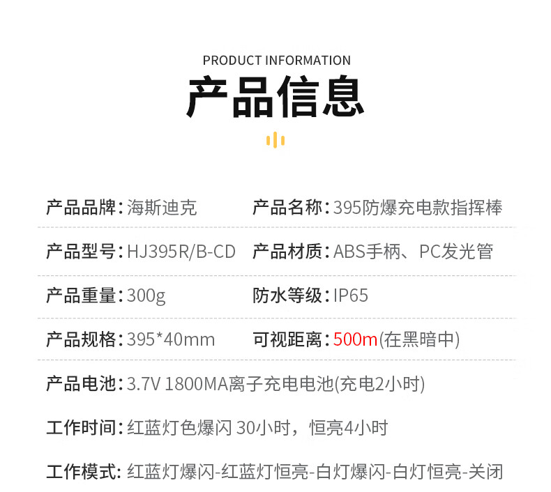海斯迪克 交通指挥棒 HKT-233 395防爆充电款 1个