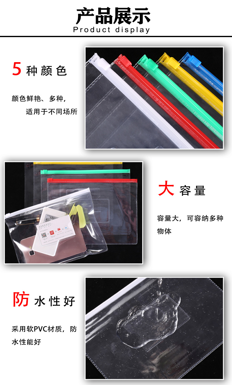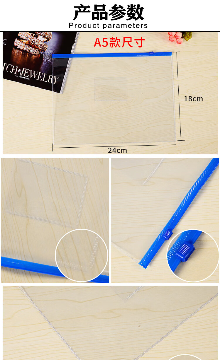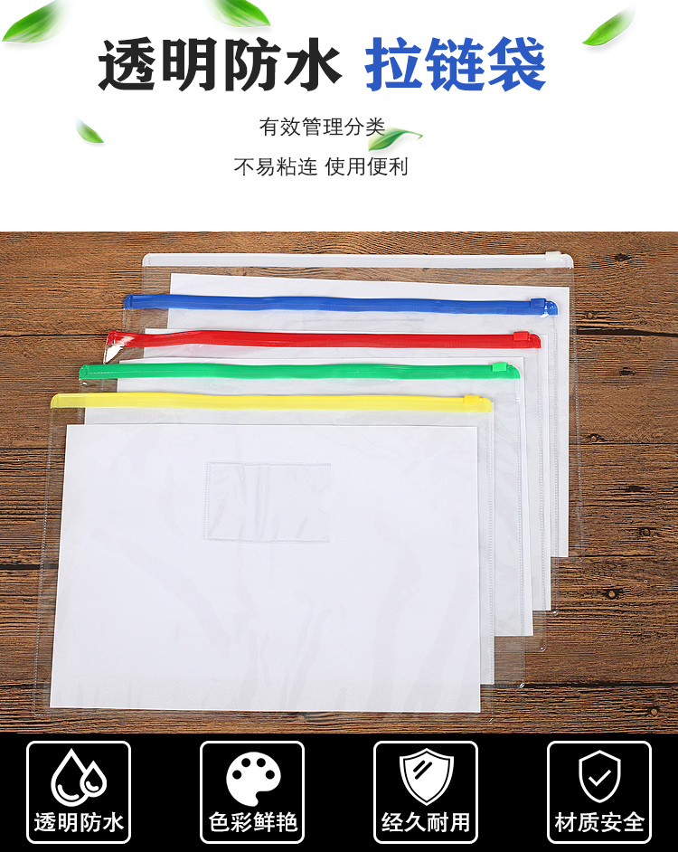 海斯迪克 PVC透明拉链文件袋 H-140 颜色随机 A4 1个