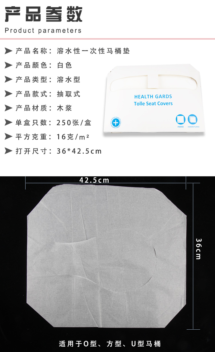 海斯迪克 可溶水一次性马桶垫 HKW-107 木浆 36×42.5cm 白色 14克 20盒 1箱