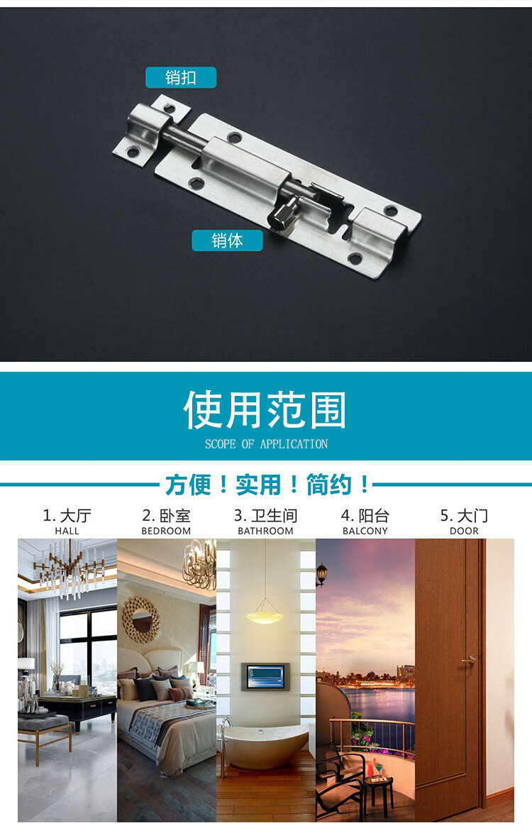 • 商品名称:海斯迪克 防盗门栓门扣插销