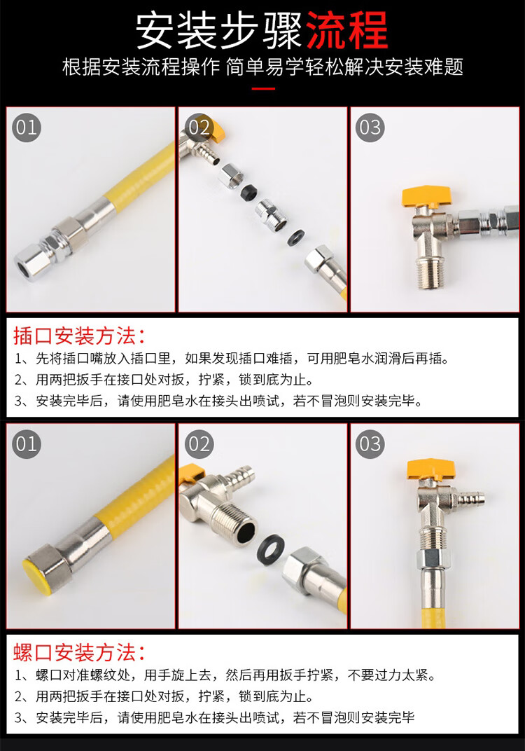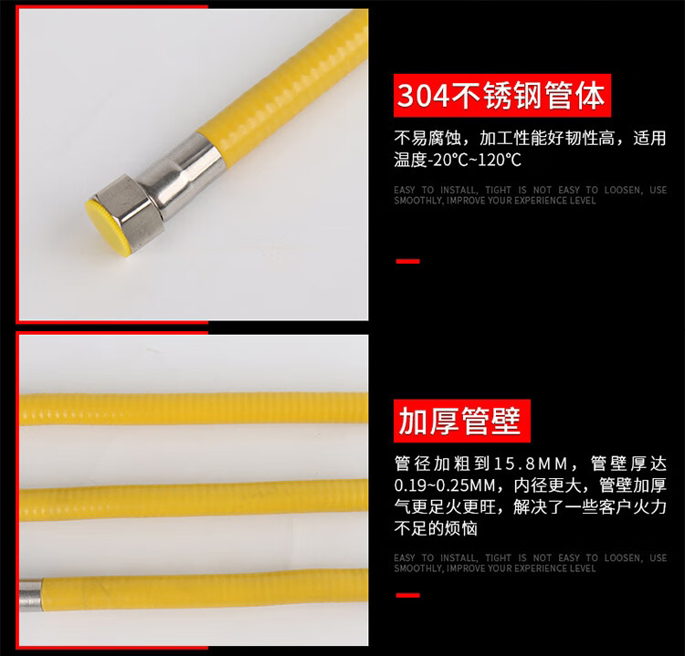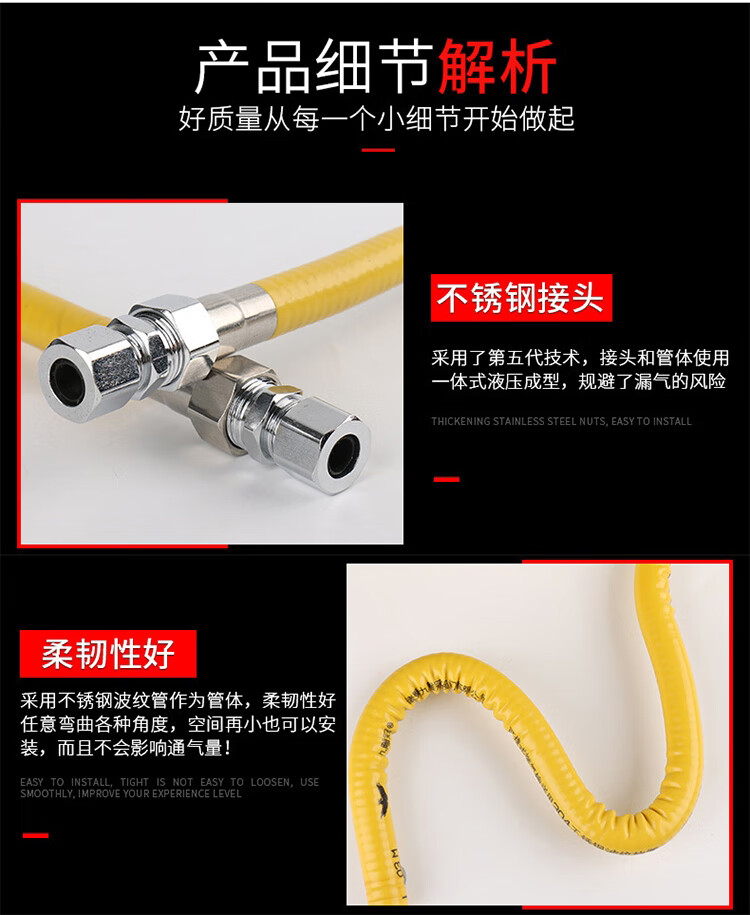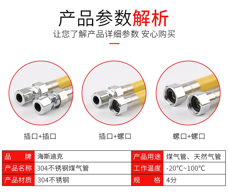 海斯迪克 4分金属波纹煤气燃气软管 HKDP-128 304不锈钢 1m 1根