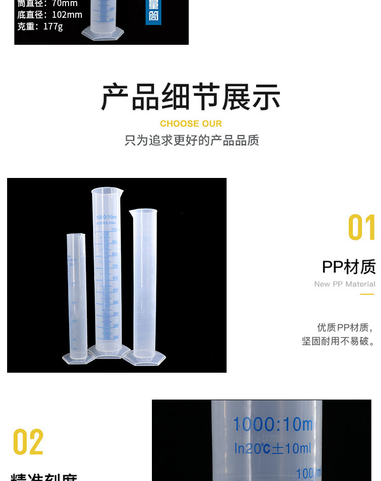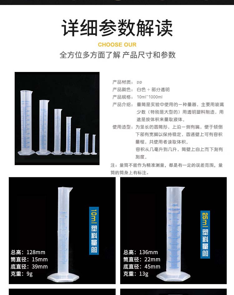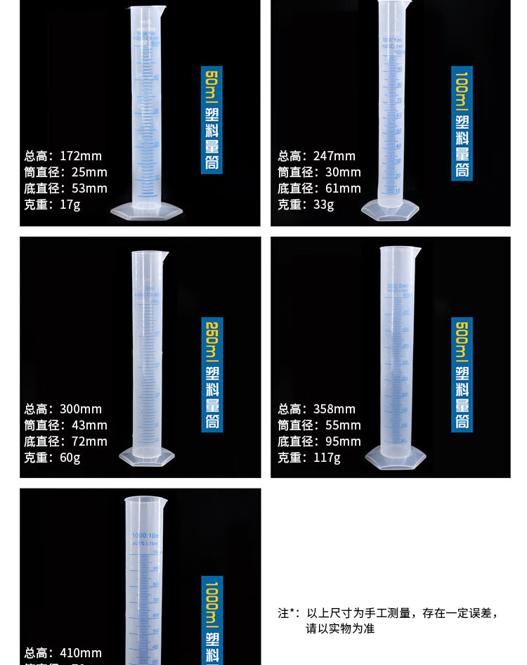 冰禹 量筒 BY-2020 100ml 塑料 3个 1包