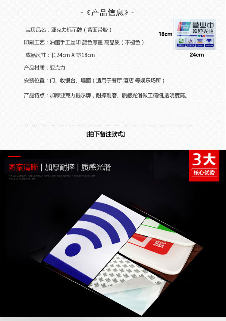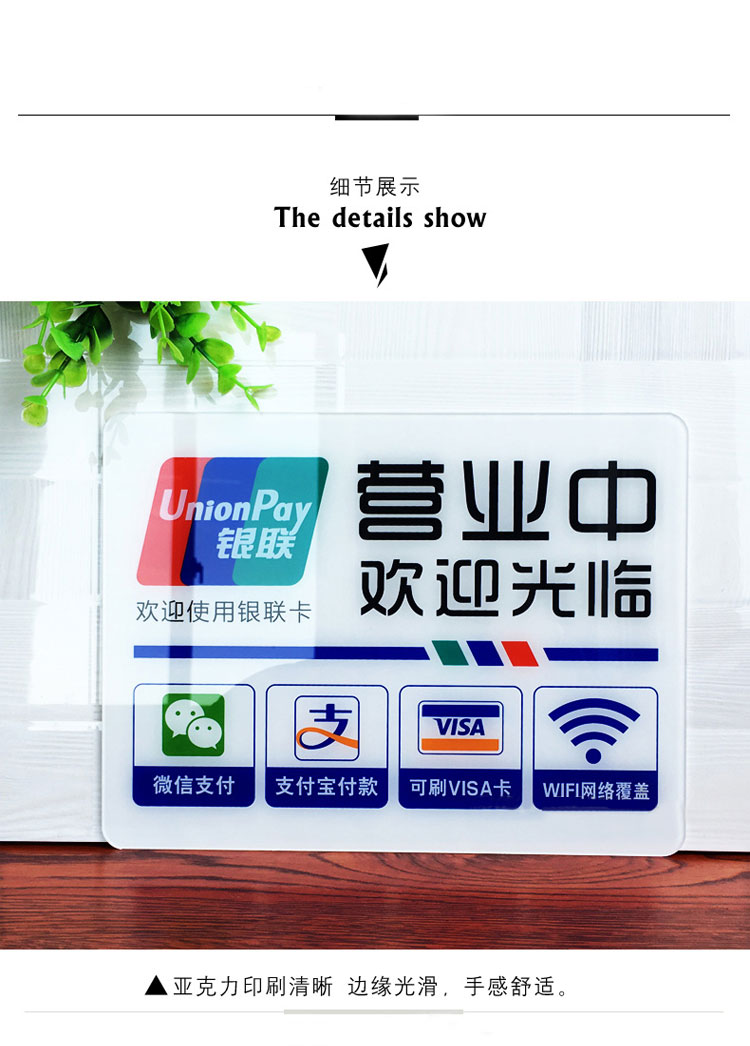海斯迪克 玻璃门贴店铺橱窗标识牌 HKW-346 亚克力 Y2营业中 18×24cm 1个