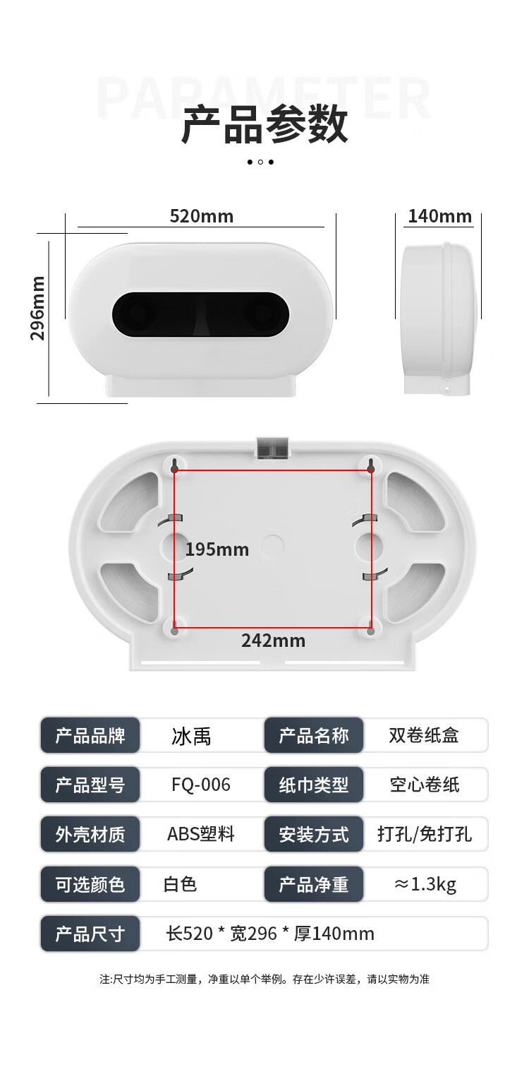冰禹 大卷纸巾盒 BYQ-900 ABS FQ006 1个