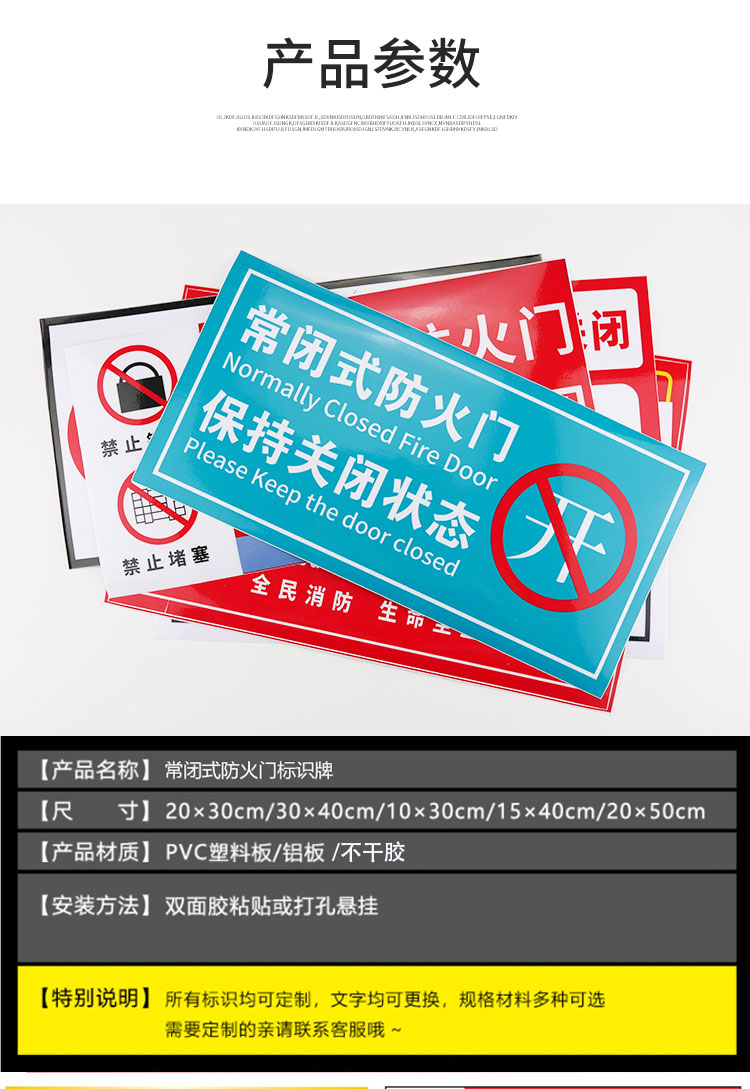 冰禹 消防安全指示牌 BYyn-115 不干胶 15*30cm 常开式防火门请保持打开状态 1个