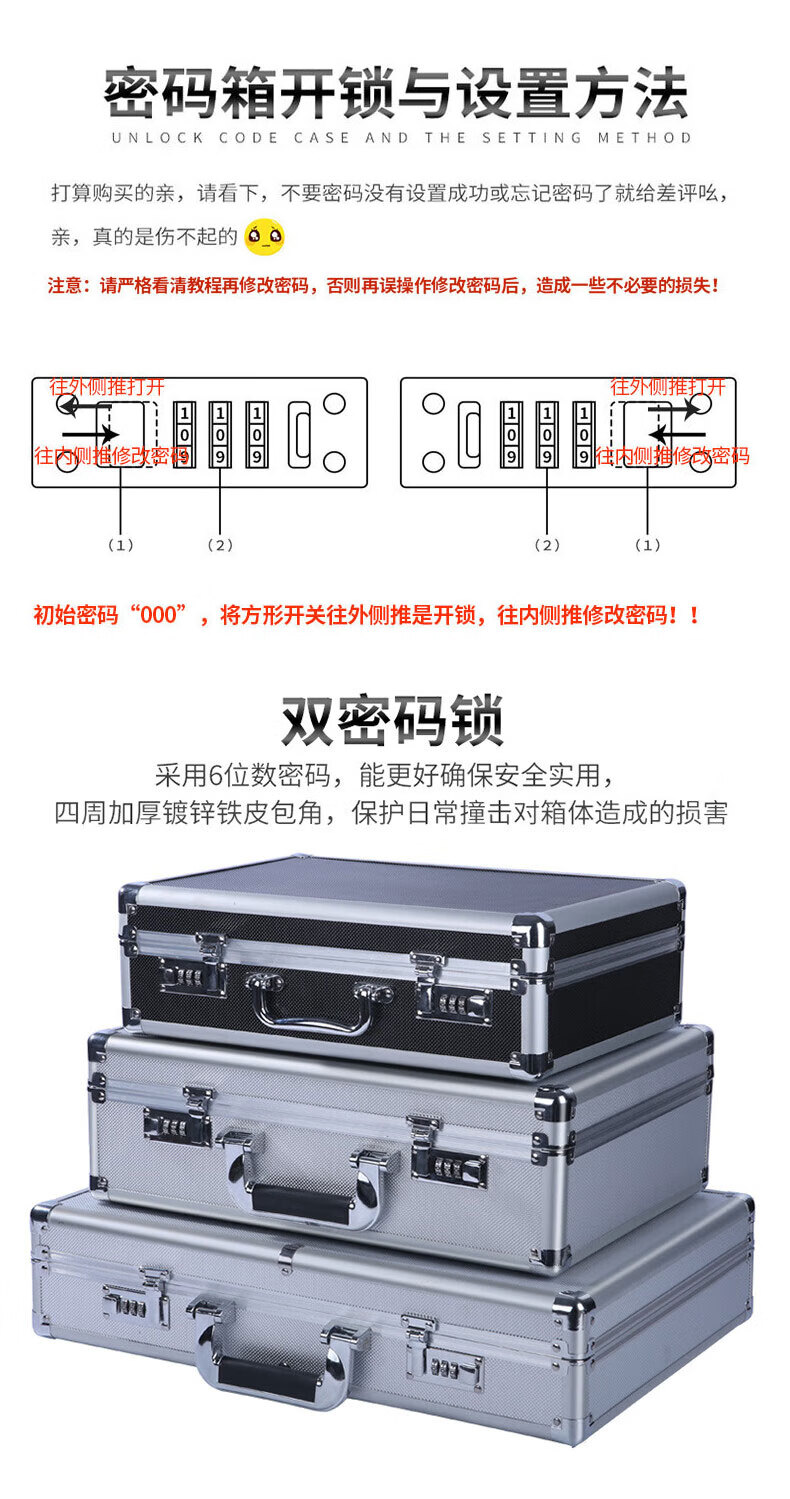 冰禹 工具箱 BYC-71 铝合金 银色 加棉密码锁 35*25*13cm 1个