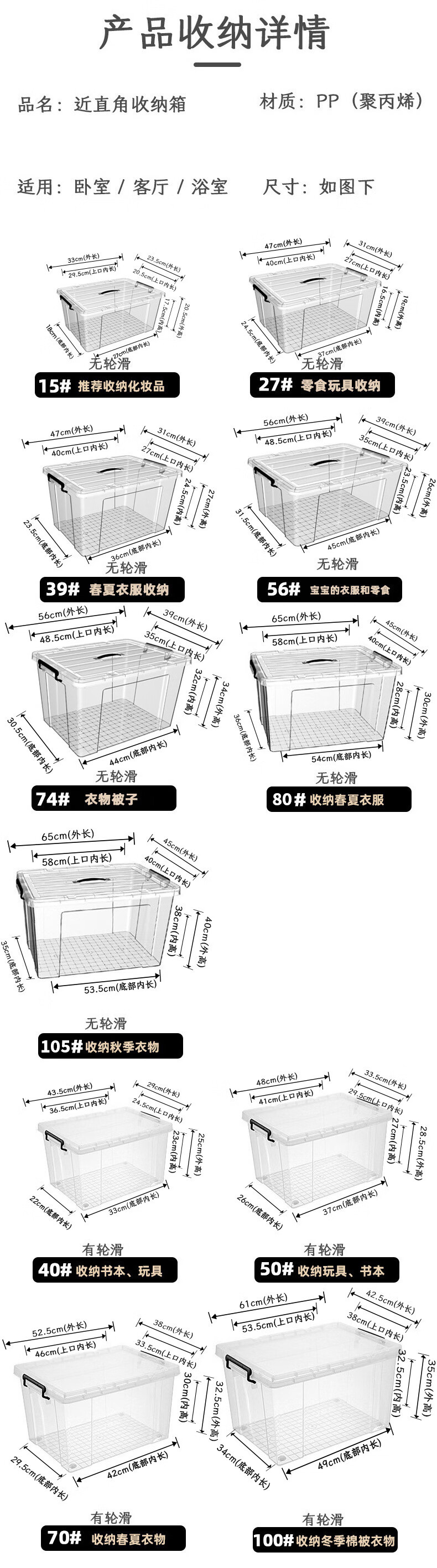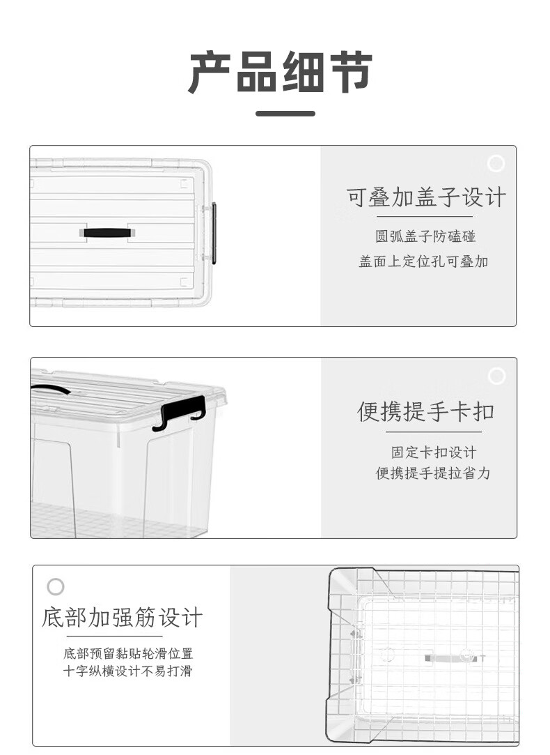 冰禹 手提塑料收纳箱 BYC-73 PP 透明 带轮 70#52.5*38*32.5cm 1个