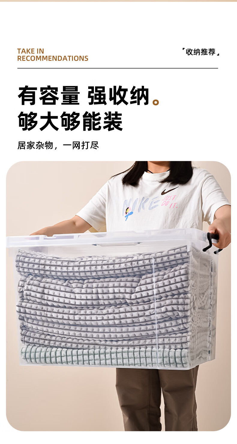冰禹 手提塑料收纳箱 BYC-73 PP 透明 无轮 105#65*45*40.5cm 1个