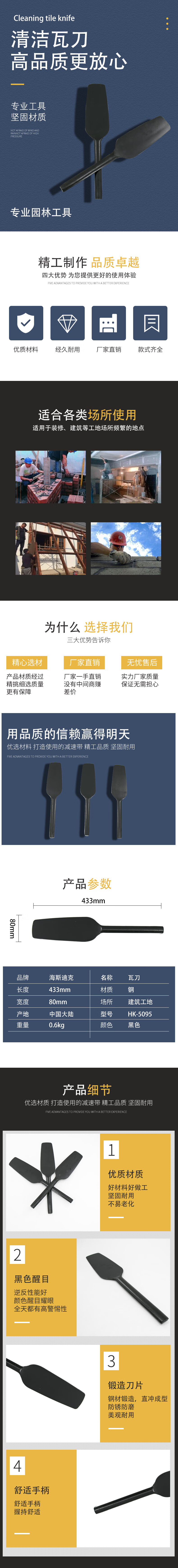 海斯迪克 清洁砖刀 HK-5095 圆头双面黑色 433*80mm 1把