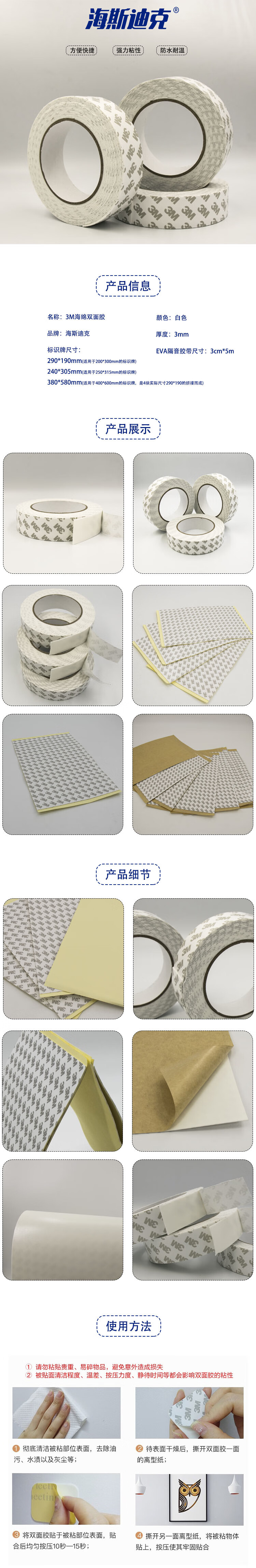 海斯迪克 双面胶强力胶 HKLY-112 白色 380*580mm 1卷