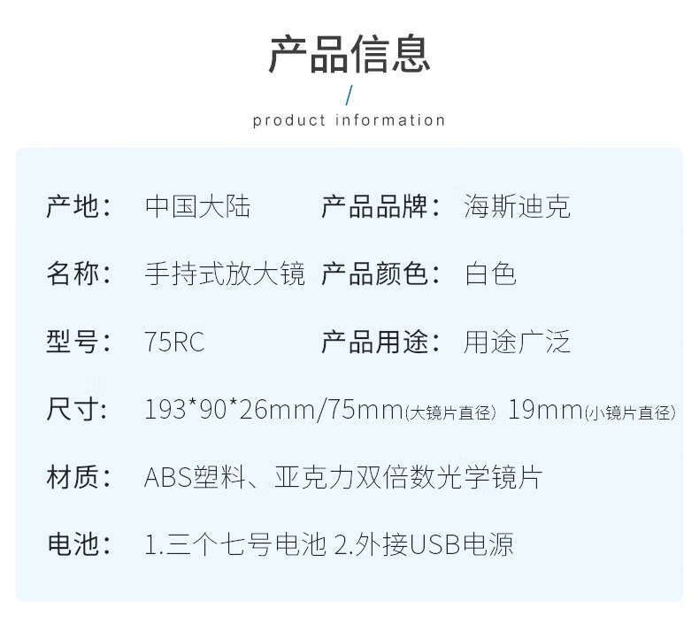 海斯迪克 台式多用途放大镜 HKCX-19 75RC 193*90*26mm 1个